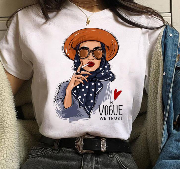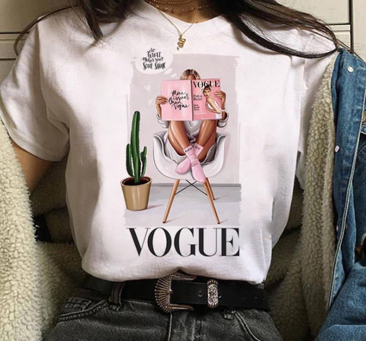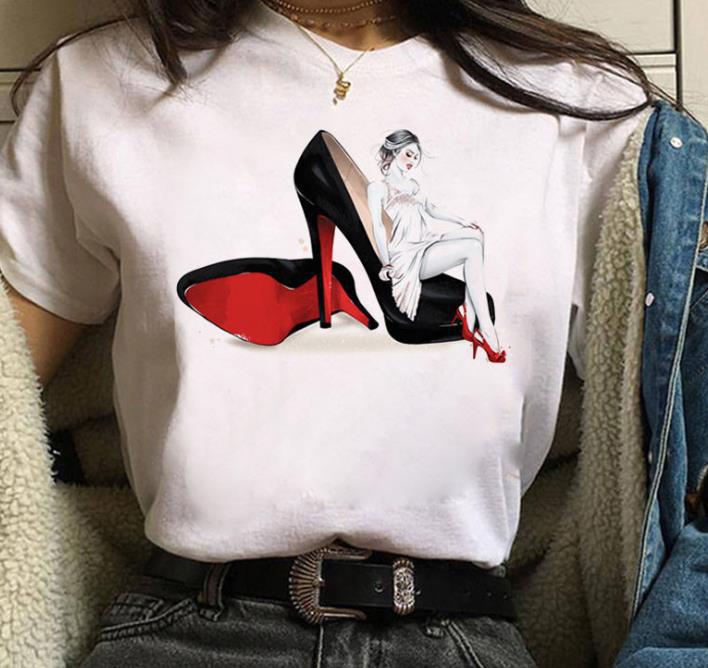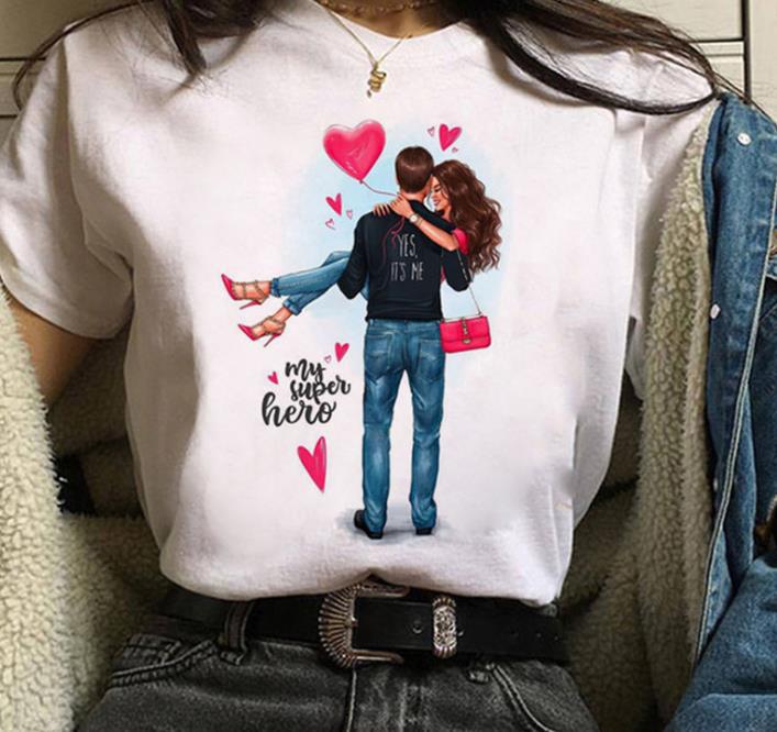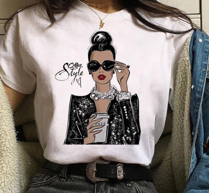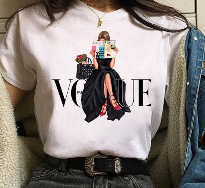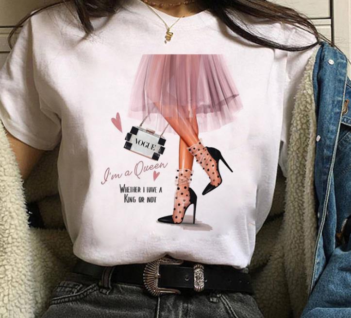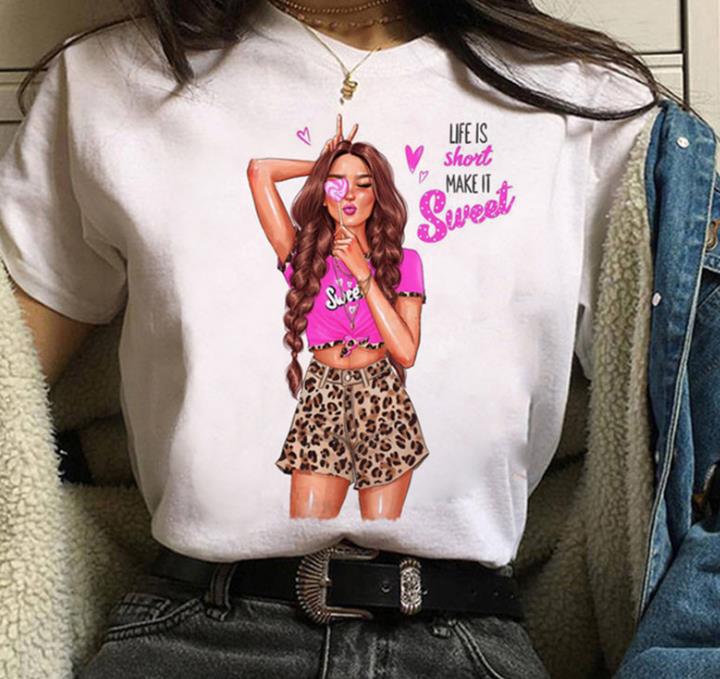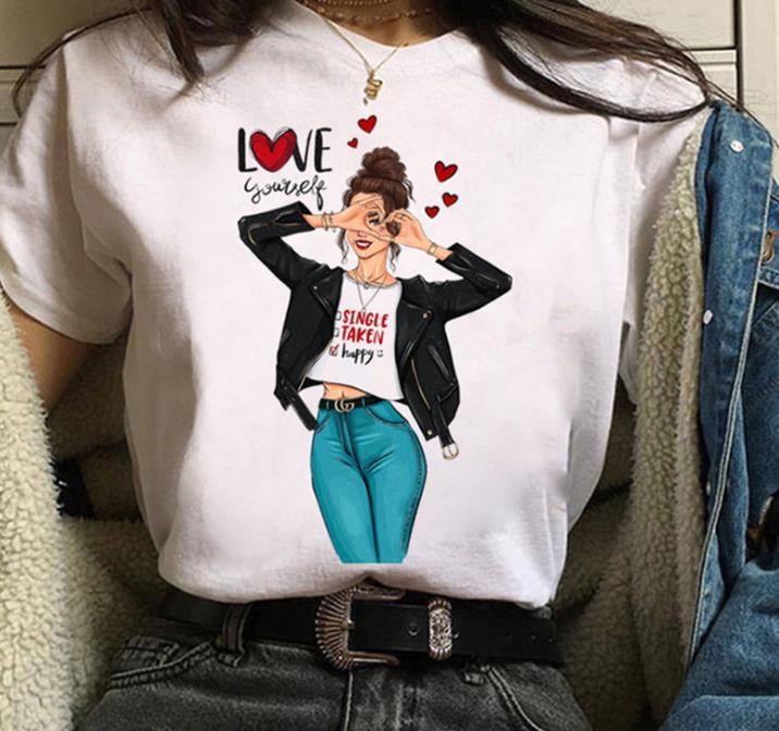 만화 패션 멋진 공주 인쇄 여성의 반팔 탑 화이트 티셔츠 느슨한 올 매치 슈퍼 인기스토어 가기