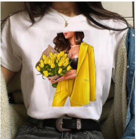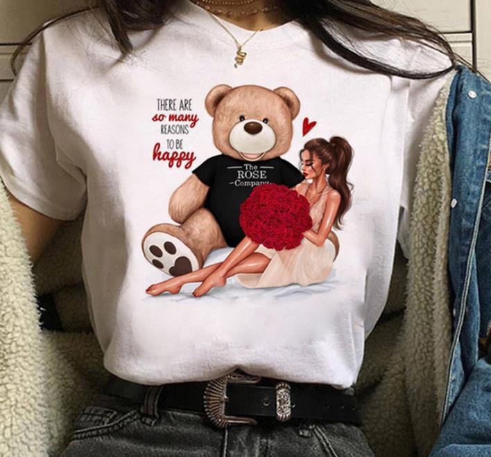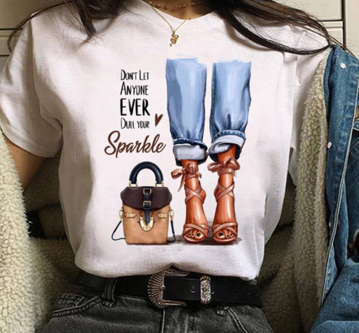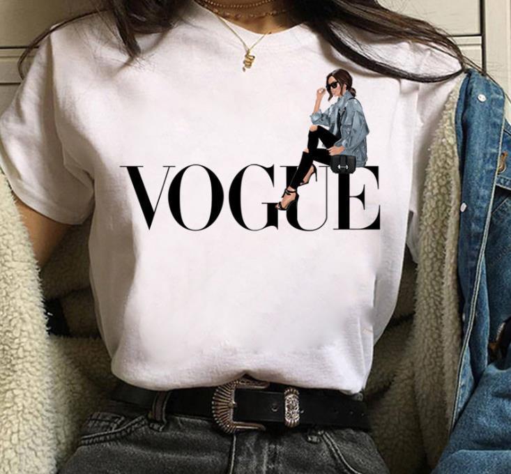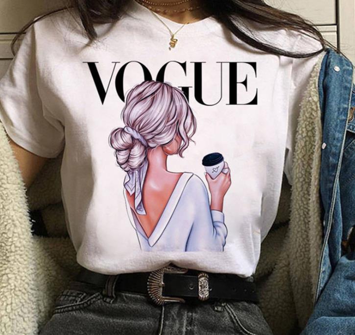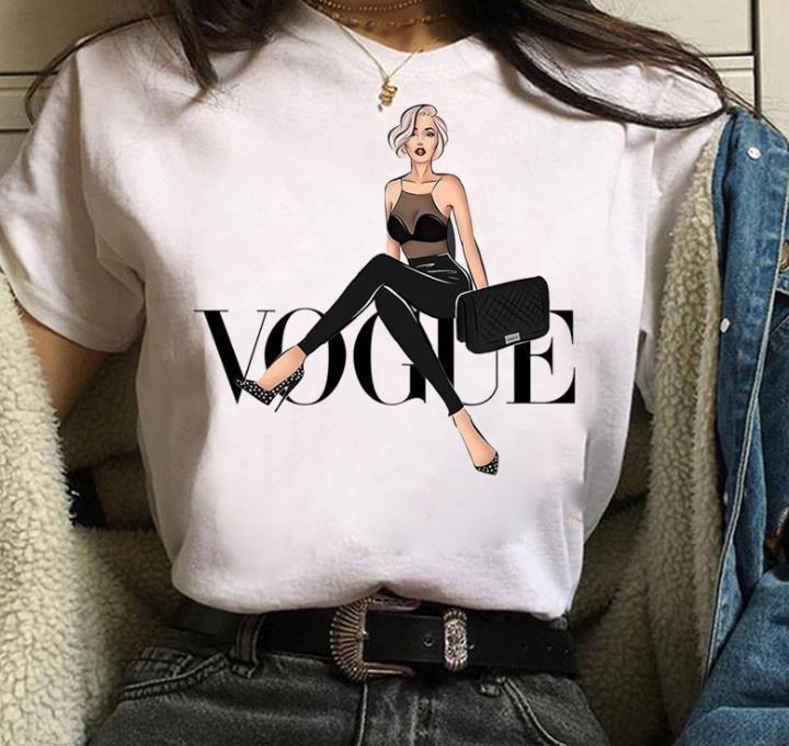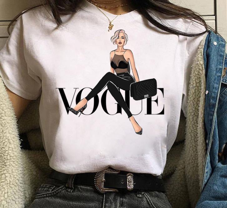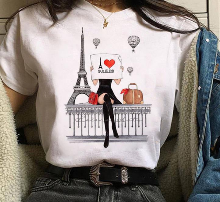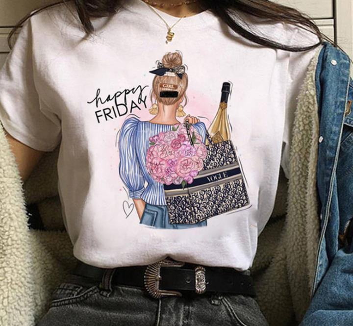 만화 패션 멋진 공주 인쇄 여성의 반팔 탑 화이트 티셔츠 느슨한 올 매치 슈퍼 인기스토어 가기