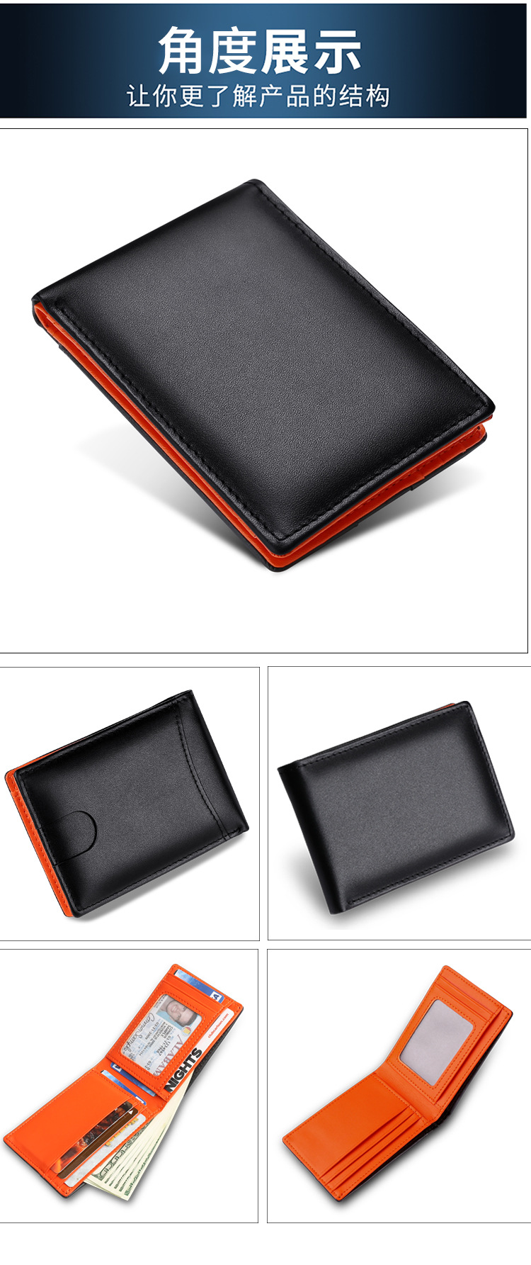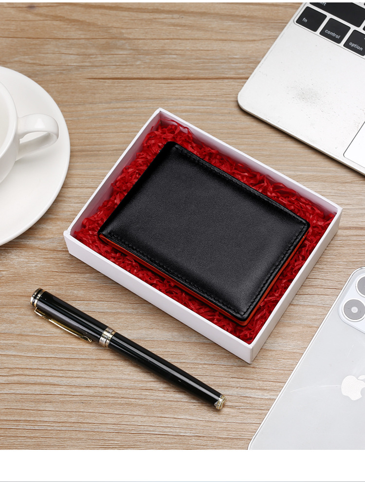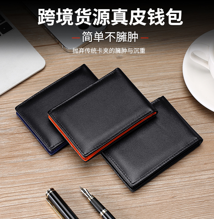빈티지 정품 가죽 초박형 골드 클립 지갑 남성용 패션 아마존 뜨거운 판매 RFID 지갑 작은 소가죽 카드 홀더스토어 가기