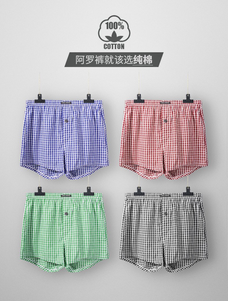 속옷 남자의 느슨한 면 4 코너 바지 Arlo 바지 편안한 통기성 얇은 면 잠옷 바지 짧은 복서 바지