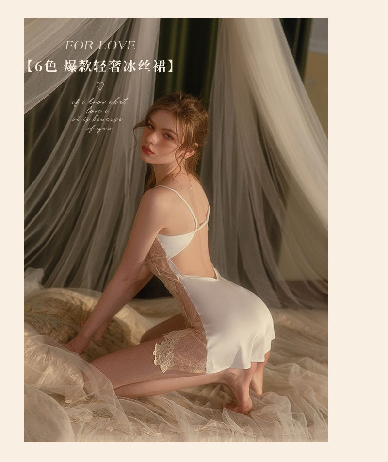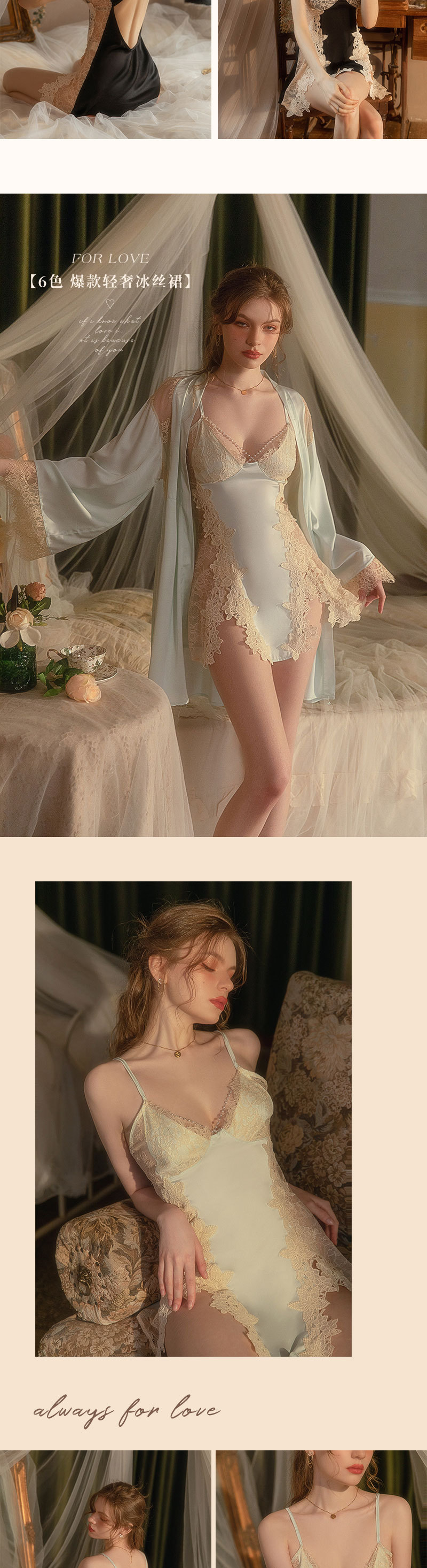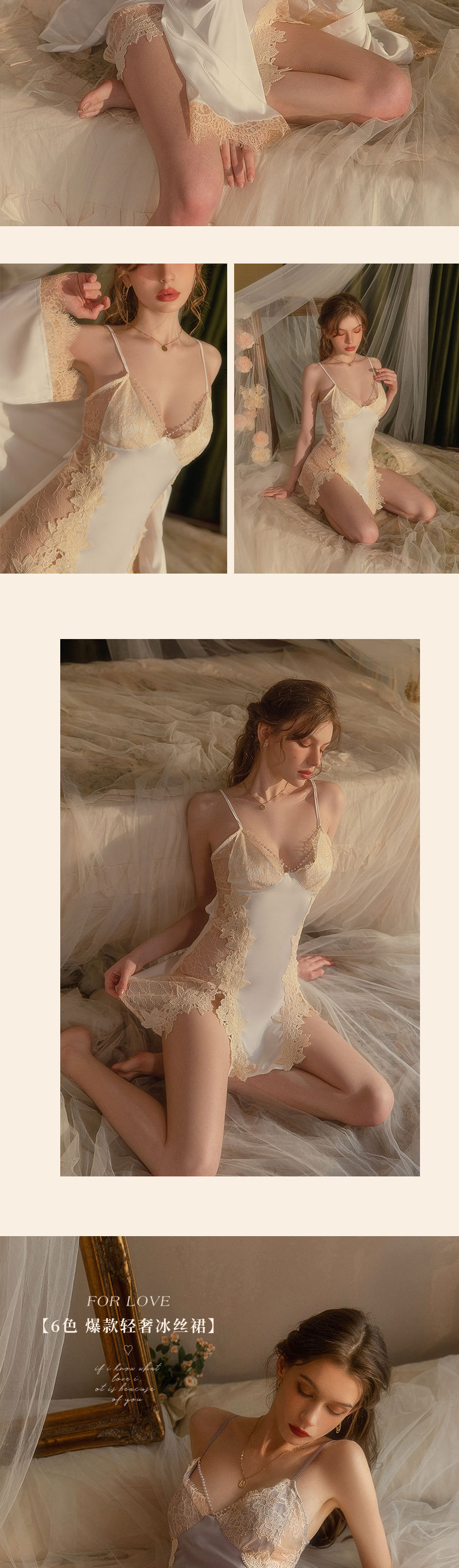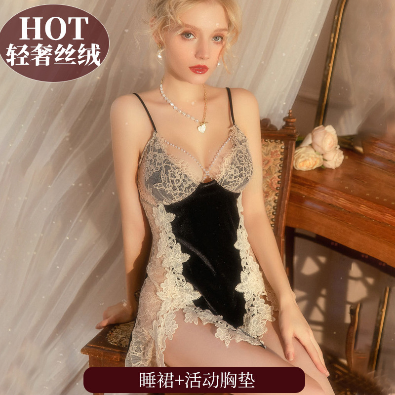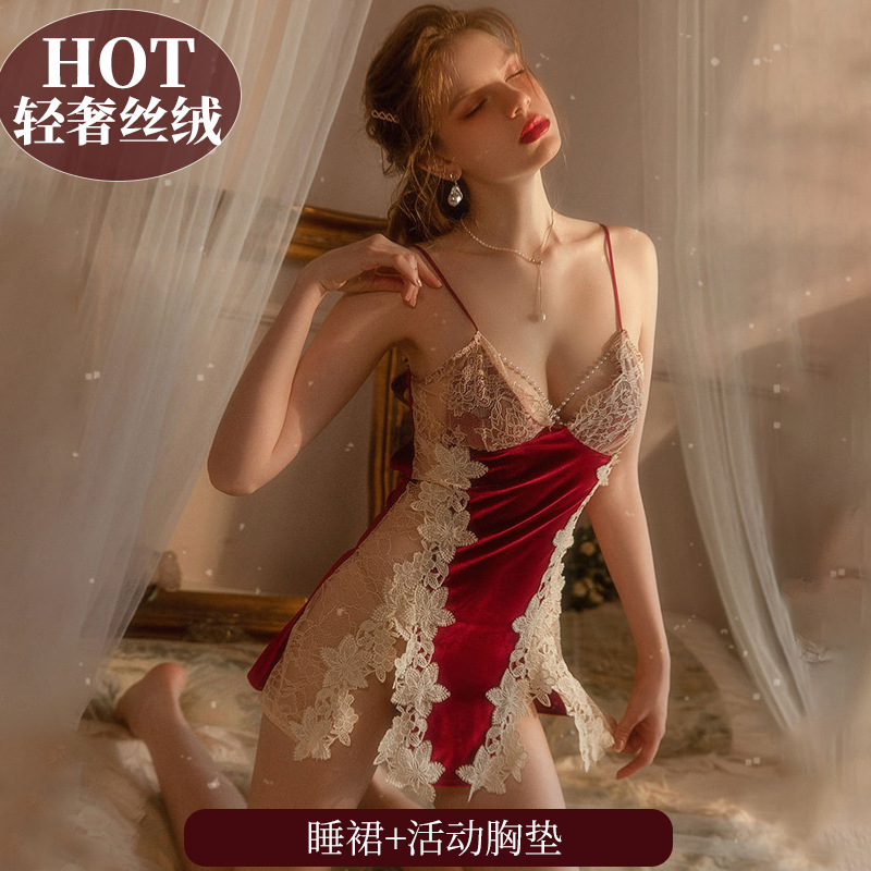 순수한 매력의 진주 커튼 섹시 레이스 잠옷 여성용 고급 실크 새틴 가슴 패드 포함 홈웨어 슬립 드레스스토어 가기