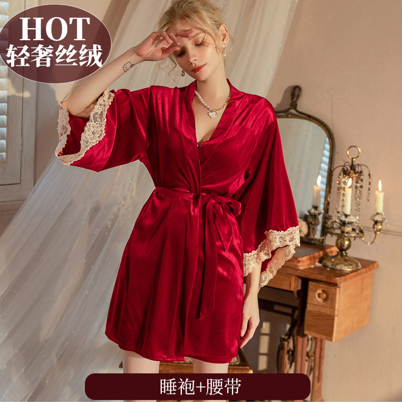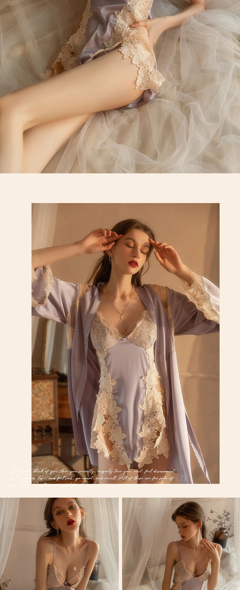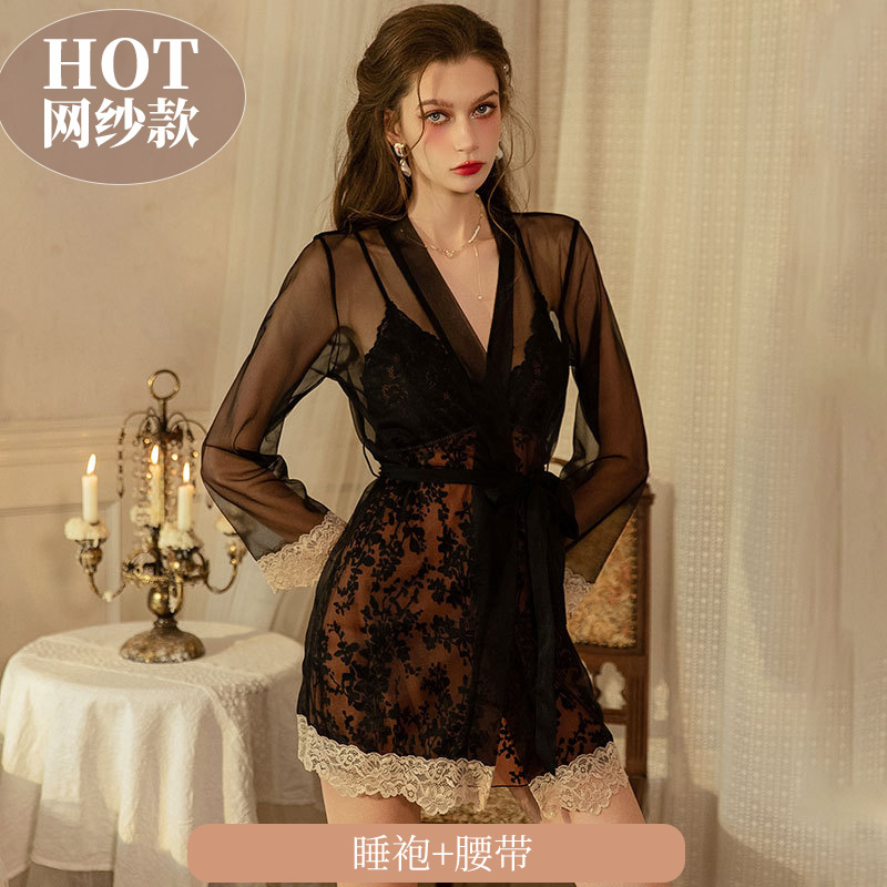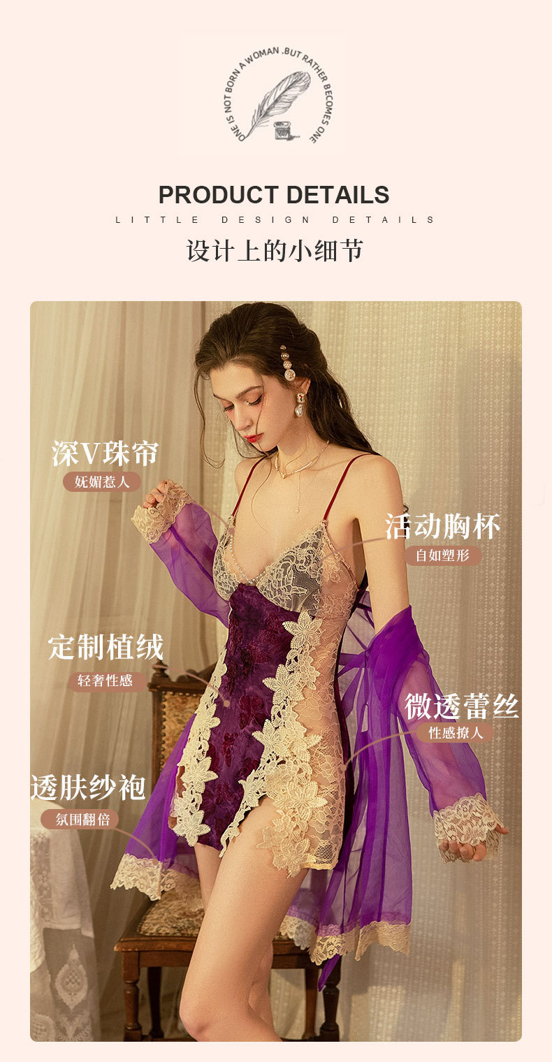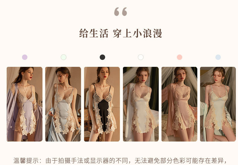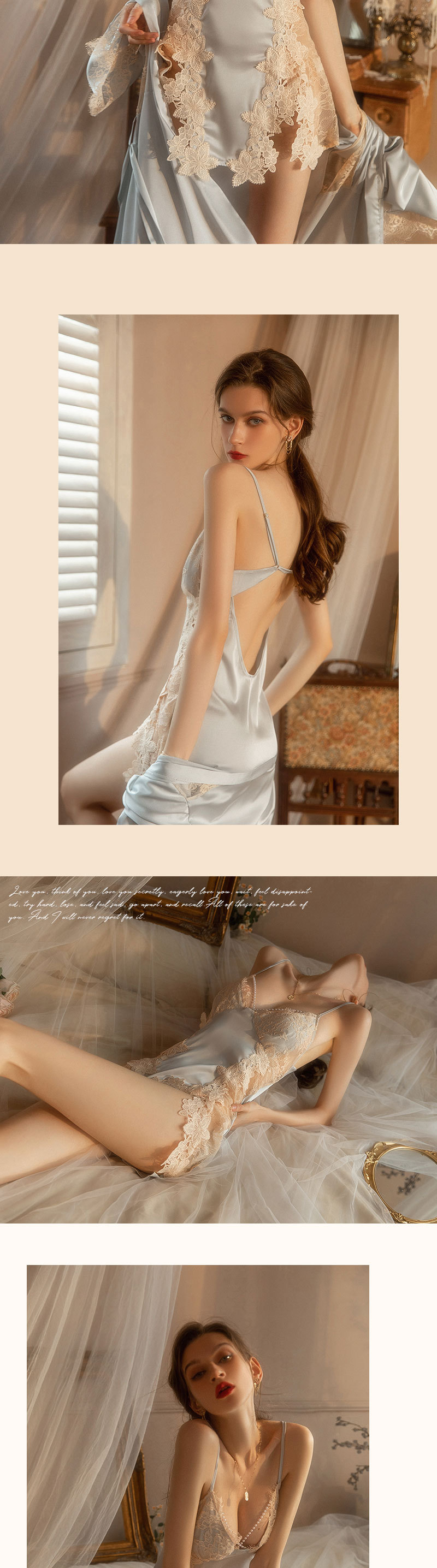 순수한 매력의 진주 커튼 섹시 레이스 잠옷 여성용 고급 실크 새틴 가슴 패드 포함 홈웨어 슬립 드레스스토어 가기