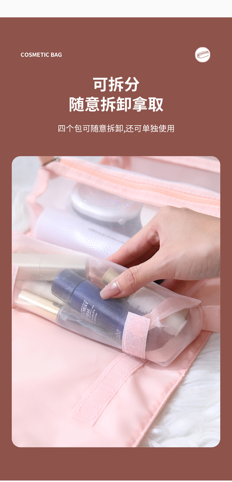 • 업그레이드된 방수 분리형 화장품 가방 [스모크 핑크]