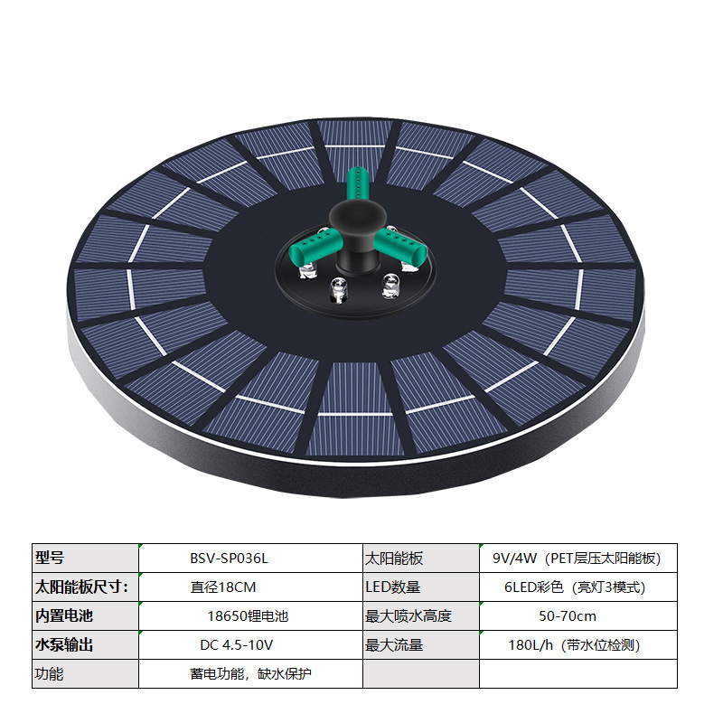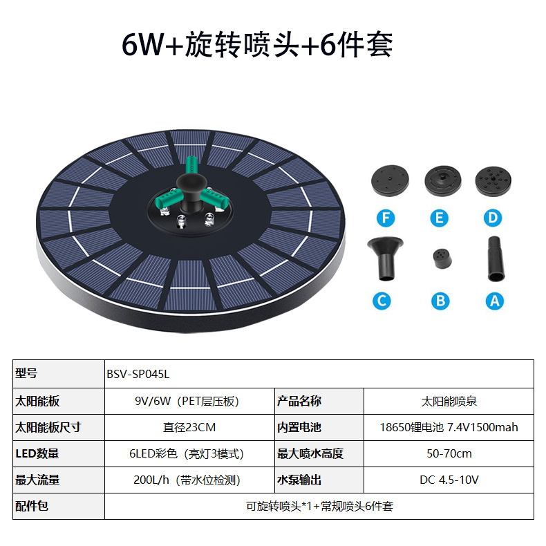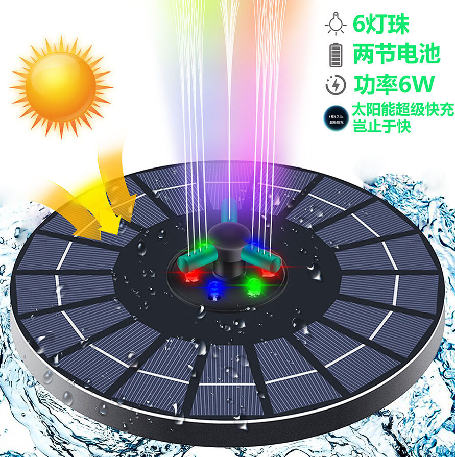 국경을 넘는 태양광 분수, 4W6W 충전식 플로팅 분수, 회전식 정원 야외 수경 장식, 분위기 있는 물 순환 시스템