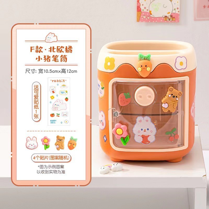 • 노르딕 오렌지 돼지 펜 홀더 + 달리는 토끼 스티커