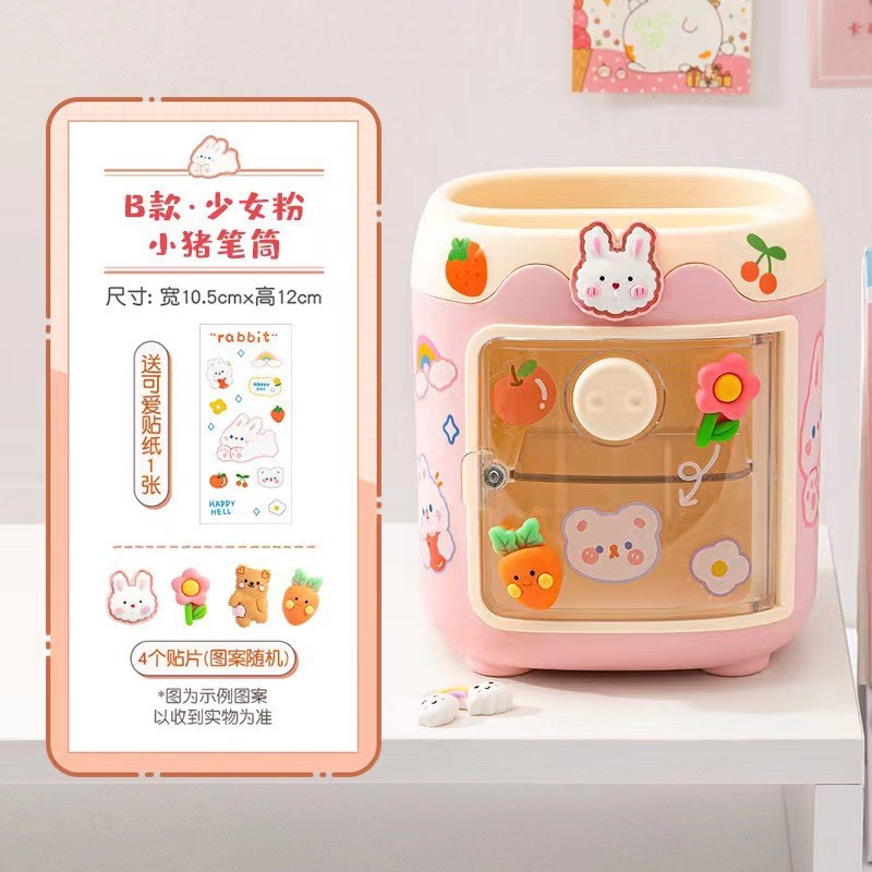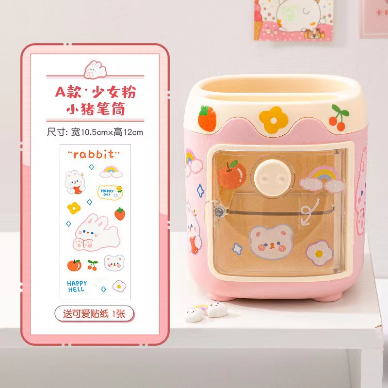 크리 에이 티브 만화 멀티 그리드 돼지 펜 홀더 학생 귀여운 다기능 보관함 가리 하트 데스크탑 문구 상자스토어 가기