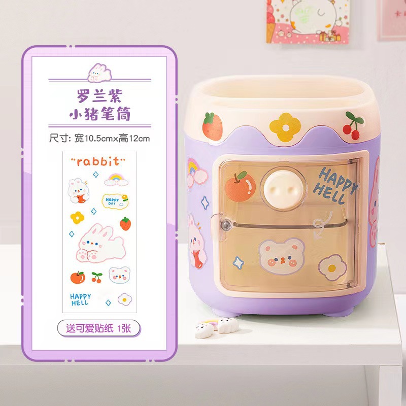 • 롤랜드 보라색 돼지 펜 홀더 + 달리는 토끼 스티커