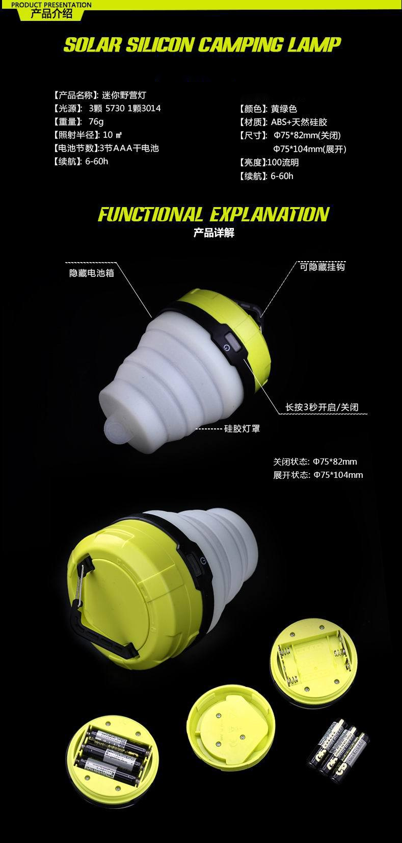 户外野营帐篷灯太阳能充电灯折叠伸缩LED露营照明灯七彩氛围灯