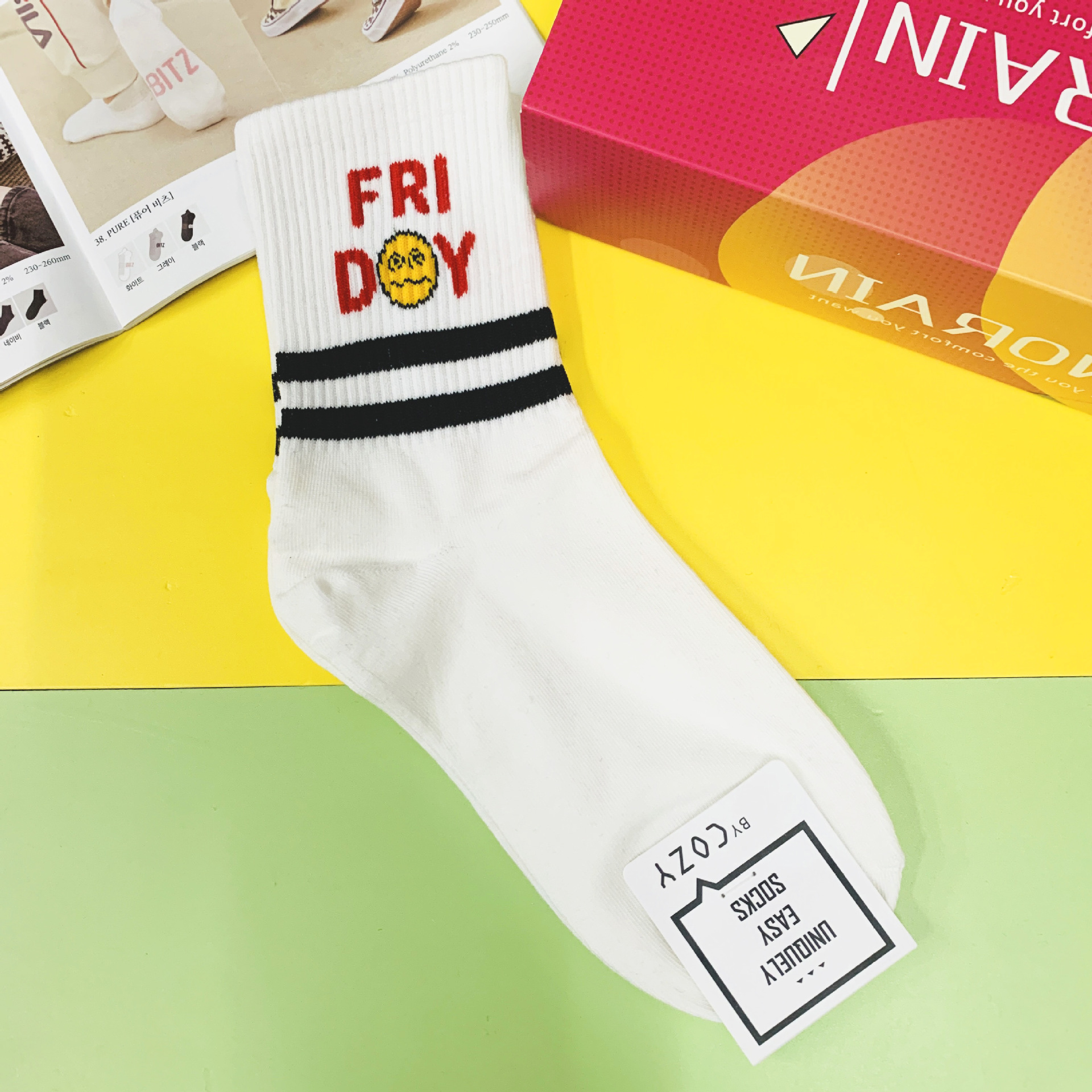 한국 동대문 2022 가을과 겨울 새로운 개인화 주간 편지 스트라이프 스마일 한국 여성의 중간 튜브 양말스토어 가기