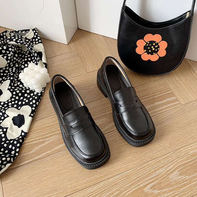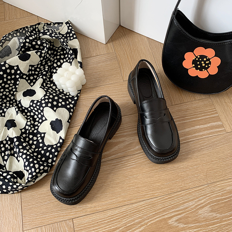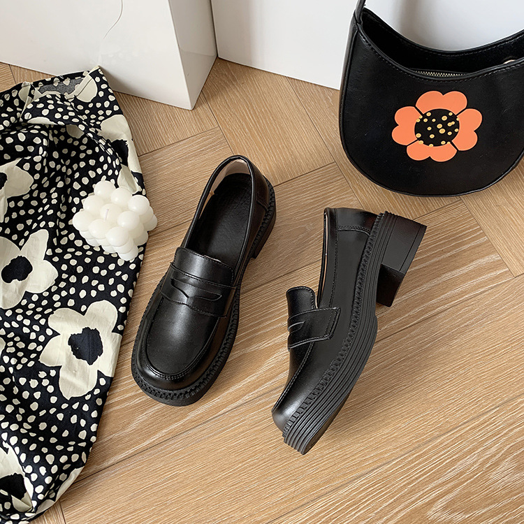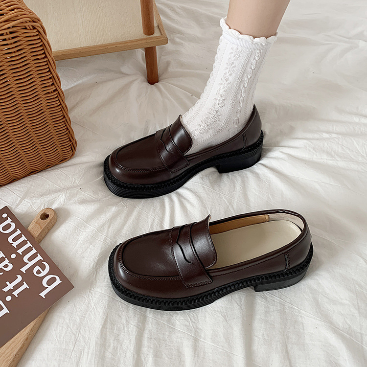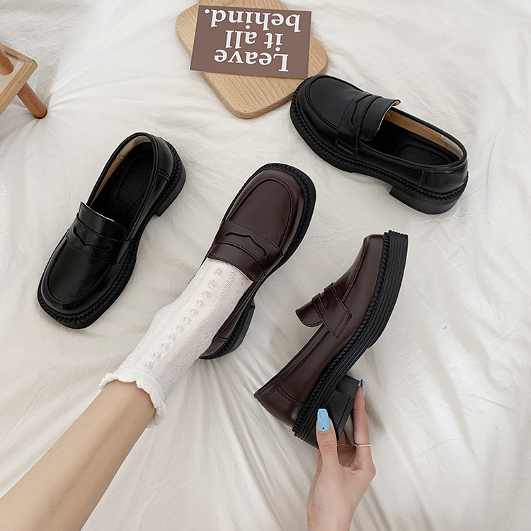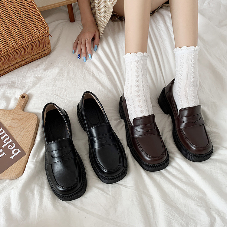 영국 스타일의 작은 가죽 신발 여성 신발 새로운 2021 빈티지 여름 로퍼 단층 신발 두꺼운 뒤꿈치 jk 유니폼 신발 in 조수스토어 가기