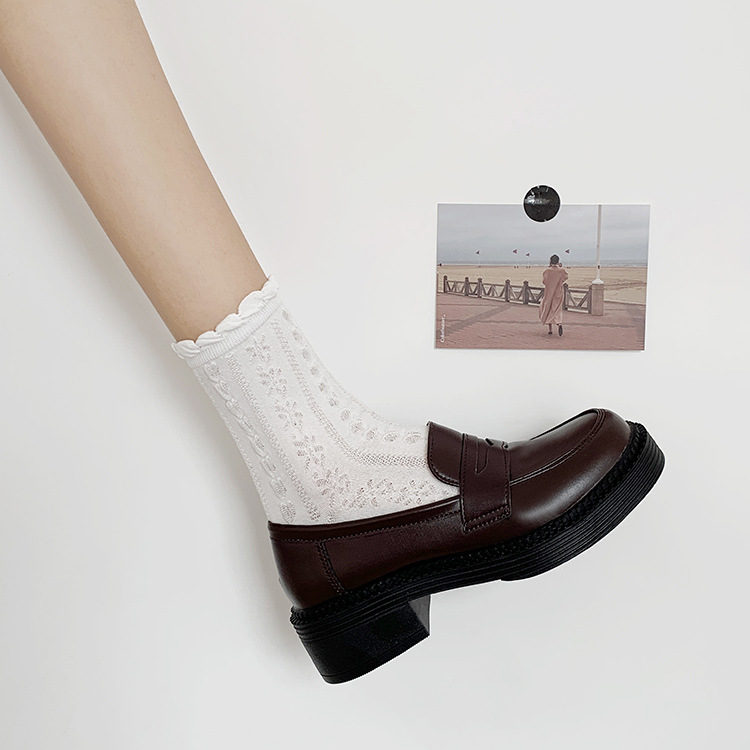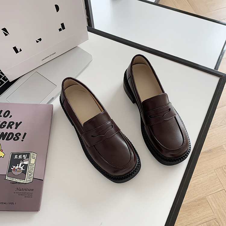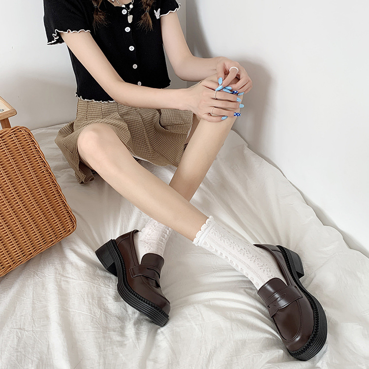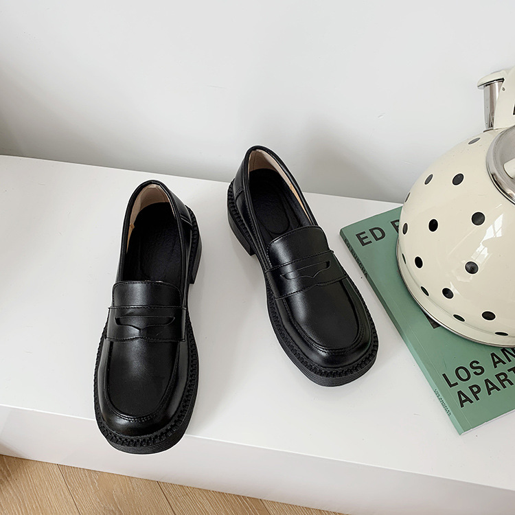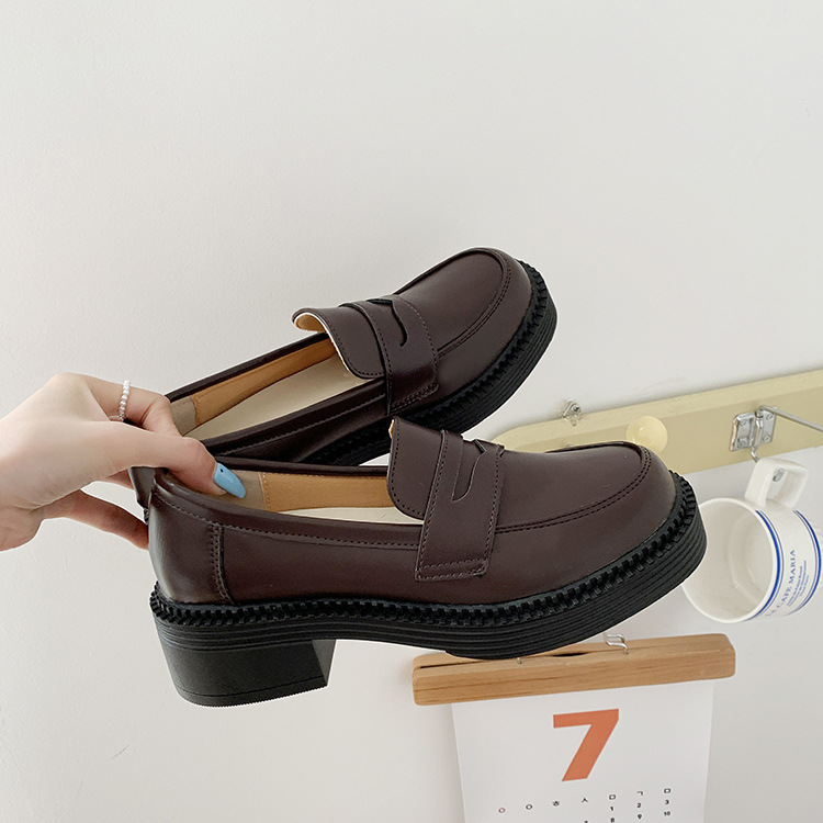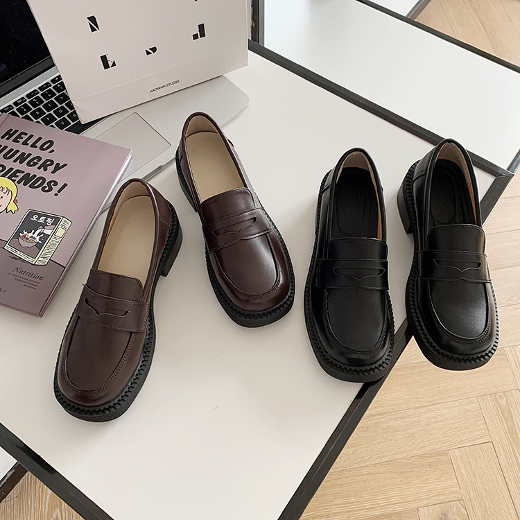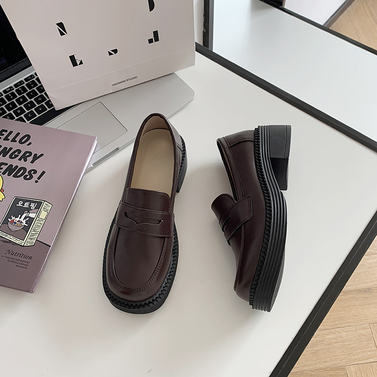영국 스타일의 작은 가죽 신발 여성 신발 새로운 2021 빈티지 여름 로퍼 단층 신발 두꺼운 뒤꿈치 jk 유니폼 신발 in 조수스토어 가기