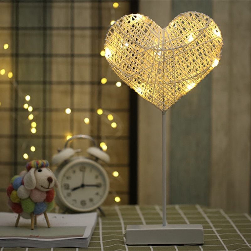 LED 등나무 종이끈 야간등 별 달 테이블 램프 인스 스타일 하트 모양 램프 달과 별 모양 램프