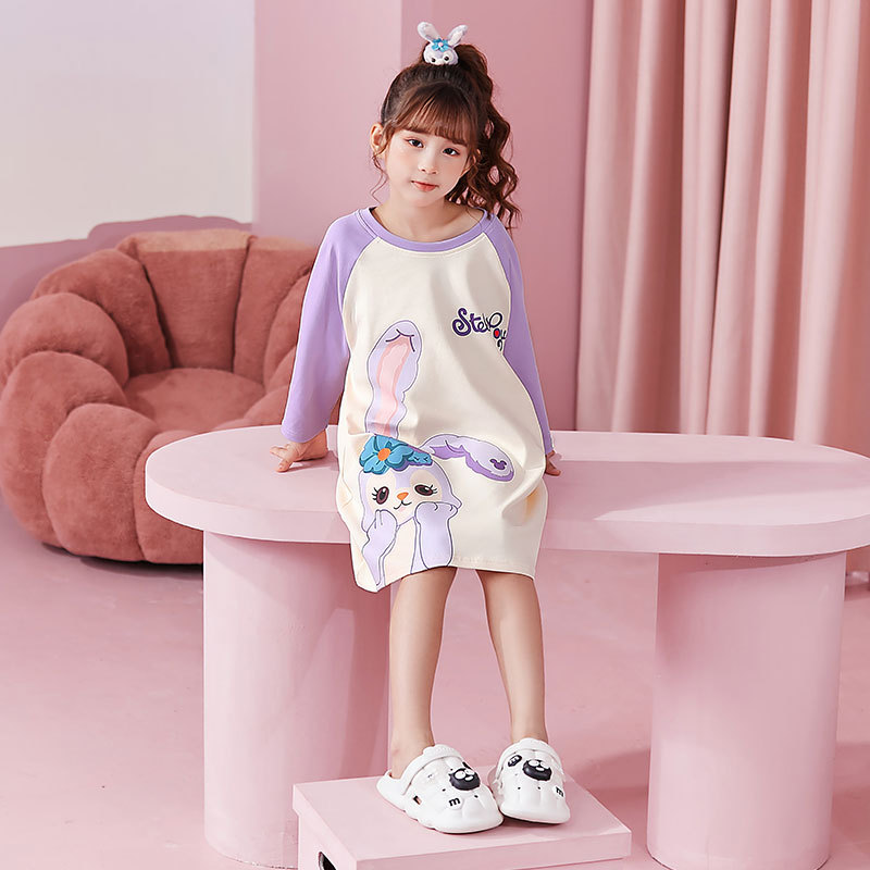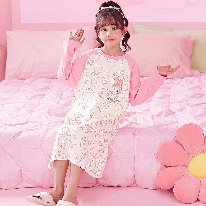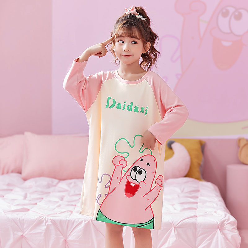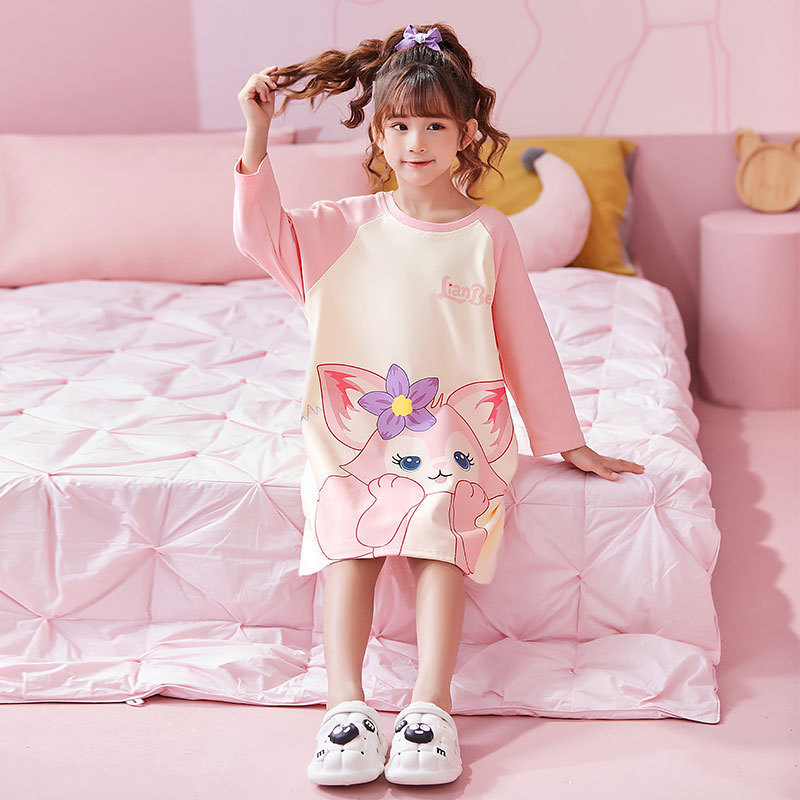 소녀의 잠옷 봄과 가을 얇은 순면 긴 소매 공주 스타일 여름 소녀의 아기 3-12 어린이 가정복 잠옷스토어 가기