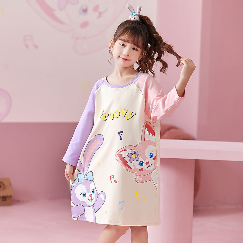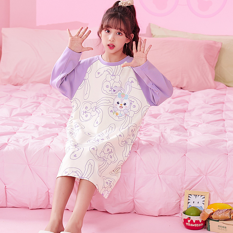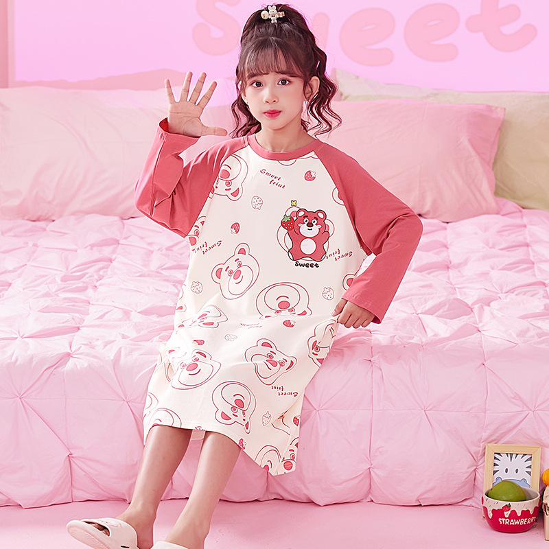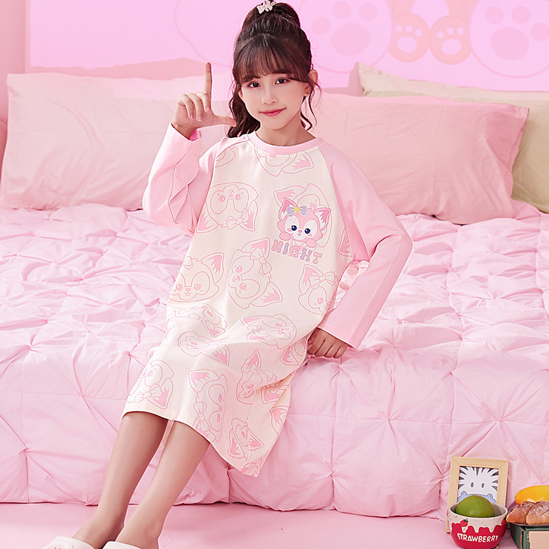 소녀의 잠옷 봄과 가을 얇은 순면 긴 소매 공주 스타일 여름 소녀의 아기 3-12 어린이 가정복 잠옷