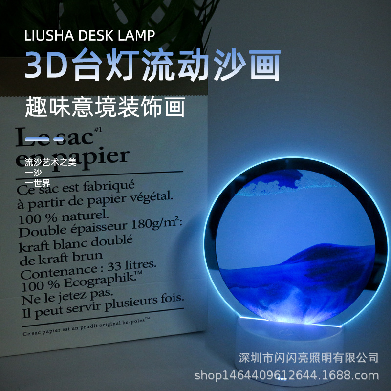 将数据线接头插上适配器(不赠送适配器),单击开关开启流沙画夜灯功能,长按触摸键关闭夜灯