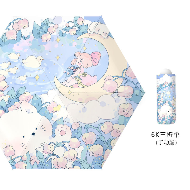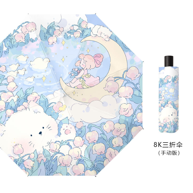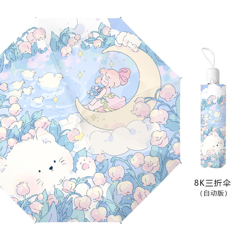 큐어 공주 스타일 INS 태양 우산 여성용 태양 보호 자외선 차단 햇빛과 비 이중 목적 휴대용 접이식 자동 우산
