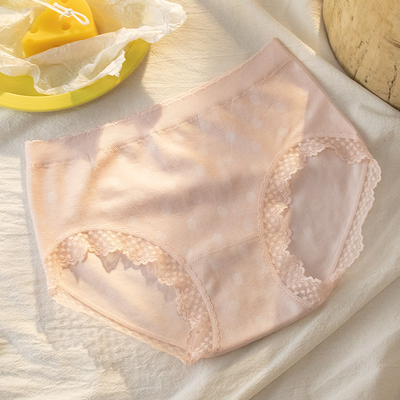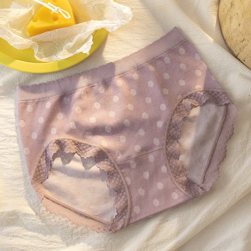 일본식 스타라이트 팬츠 코튼 웨이브 도트 미드 웨이스트 여아 속옷 순면 가랑이 레이스 여성용 얇은 비 마킹 팬티