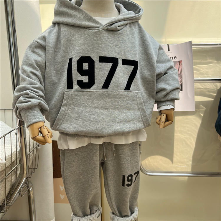 한국 아동 의류 2023 봄 소년과 소녀 후드 스웨터 세트 어린이 ES1977 느슨한 스포츠 투피스 조수스토어 가기