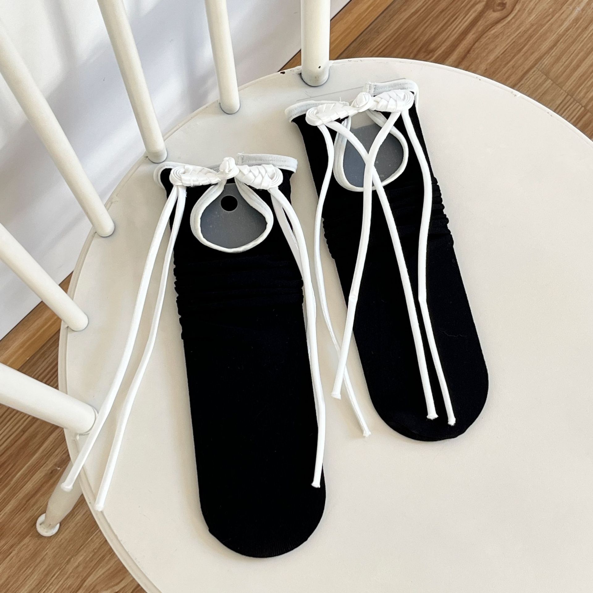 In 스타일 작은 빨간색 책 같은 스타일 흑백 간단한 버클 리본 드롭 느낌 종아리 양말 단색 종아리 중간 길이 양말 슬리밍