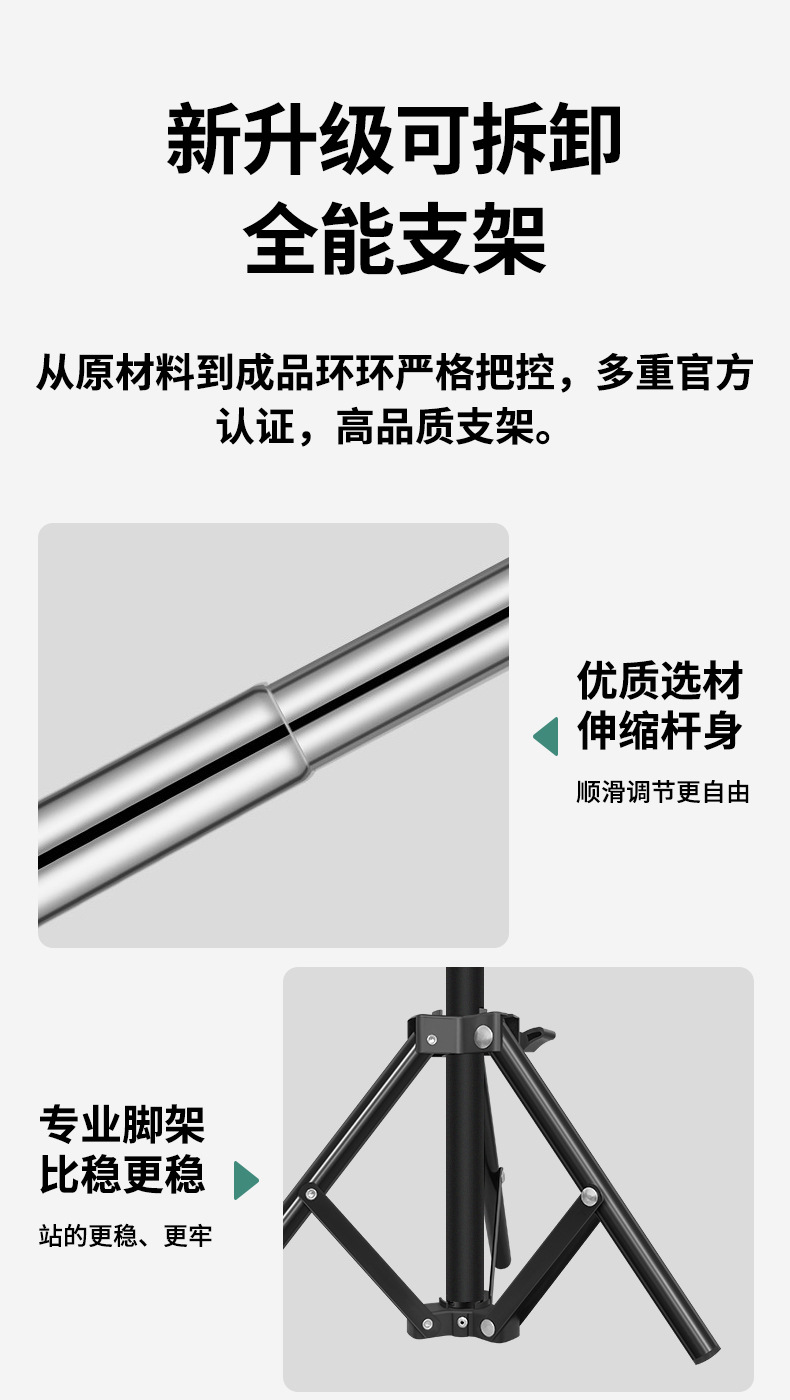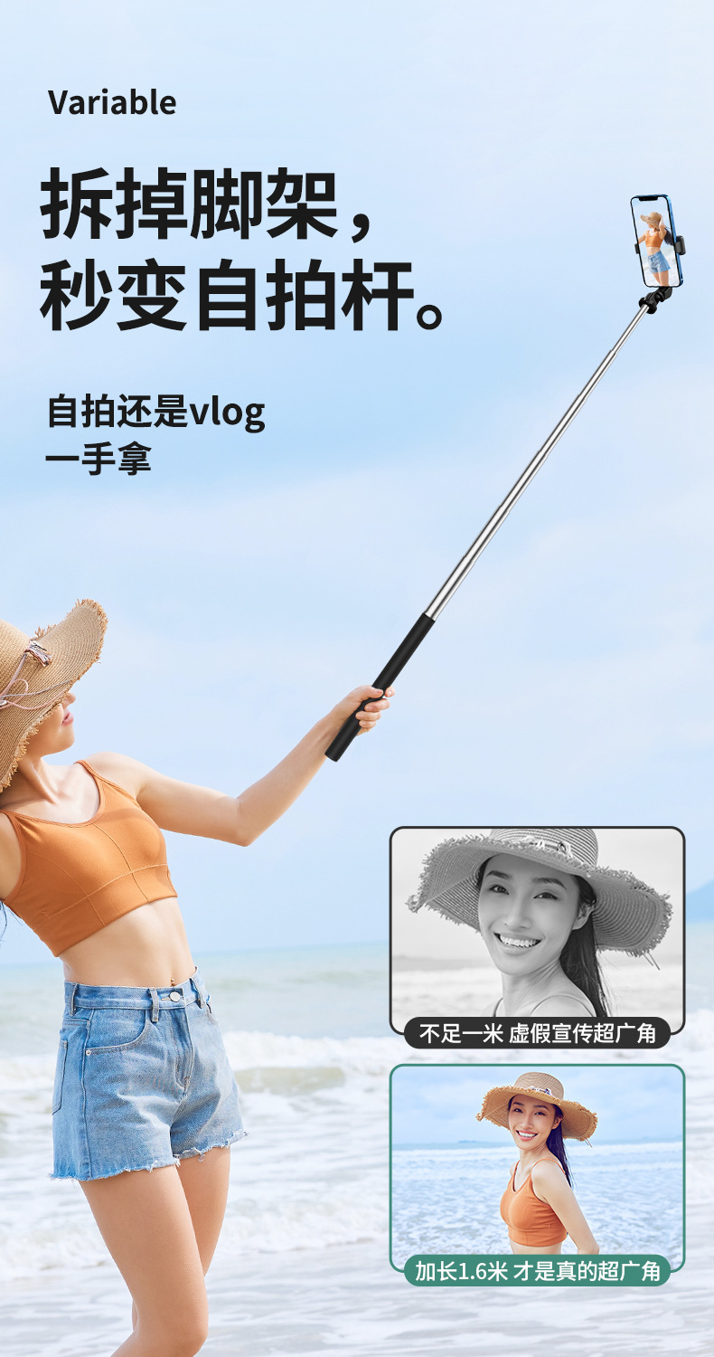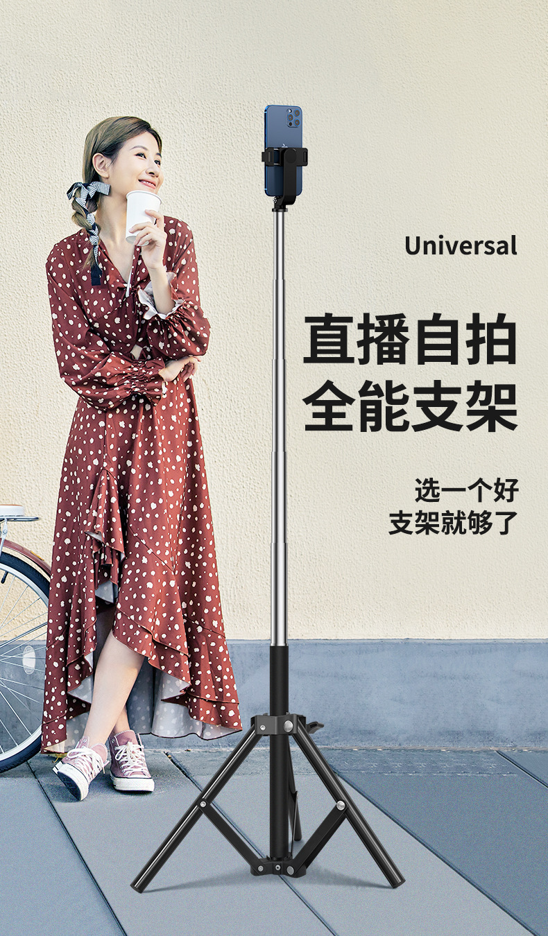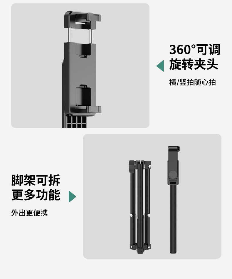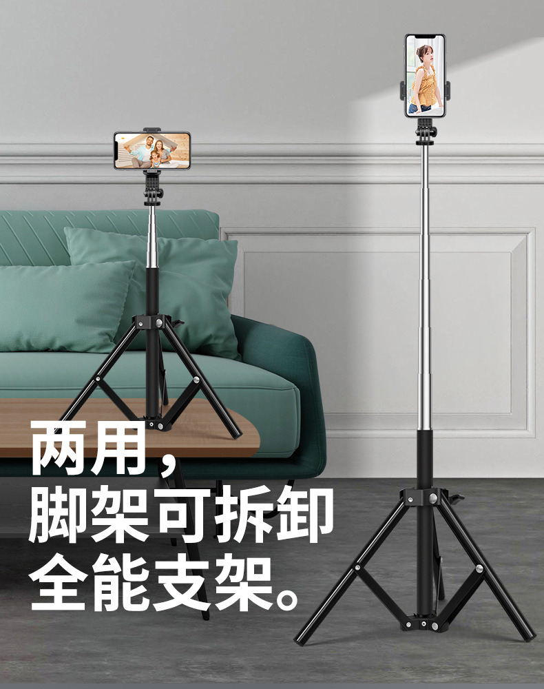 이중 목적 휴대 전화 홀더 분리형 셀카 스틱 2-in -1 접이식 휴대용 트레몰로 라이브 삼각대