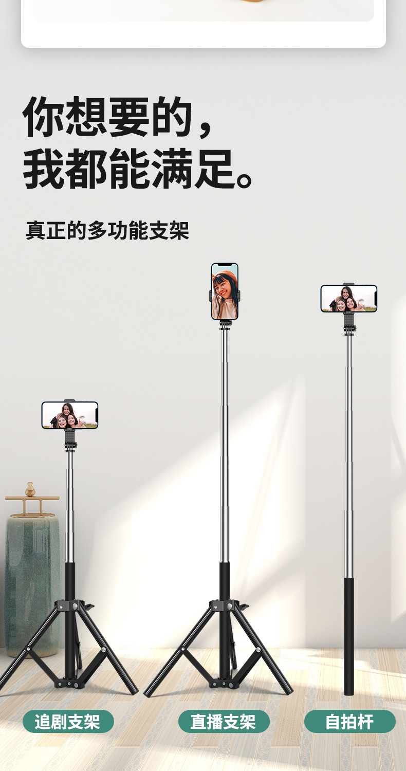 이중 목적 휴대 전화 홀더 분리형 셀카 스틱 2-in -1 접이식 휴대용 트레몰로 라이브 삼각대스토어 가기