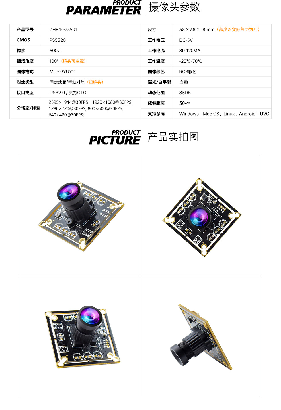 5 백만 화소 컴퓨터 라이브 방송 온라인 수업 usb 카메라 모듈 접시 인식 넓은 동적 왜곡 방지 공급