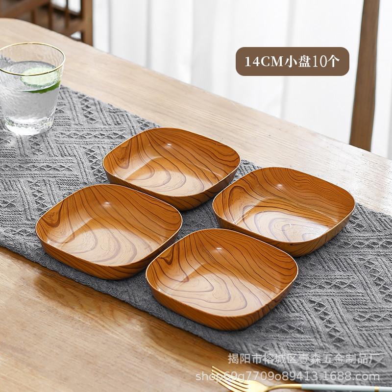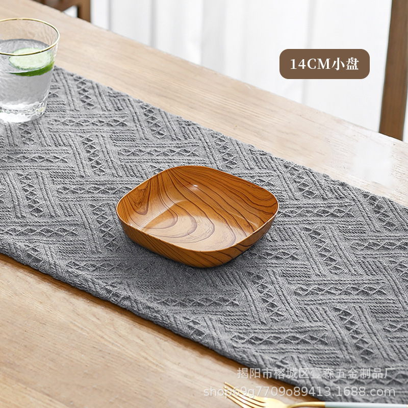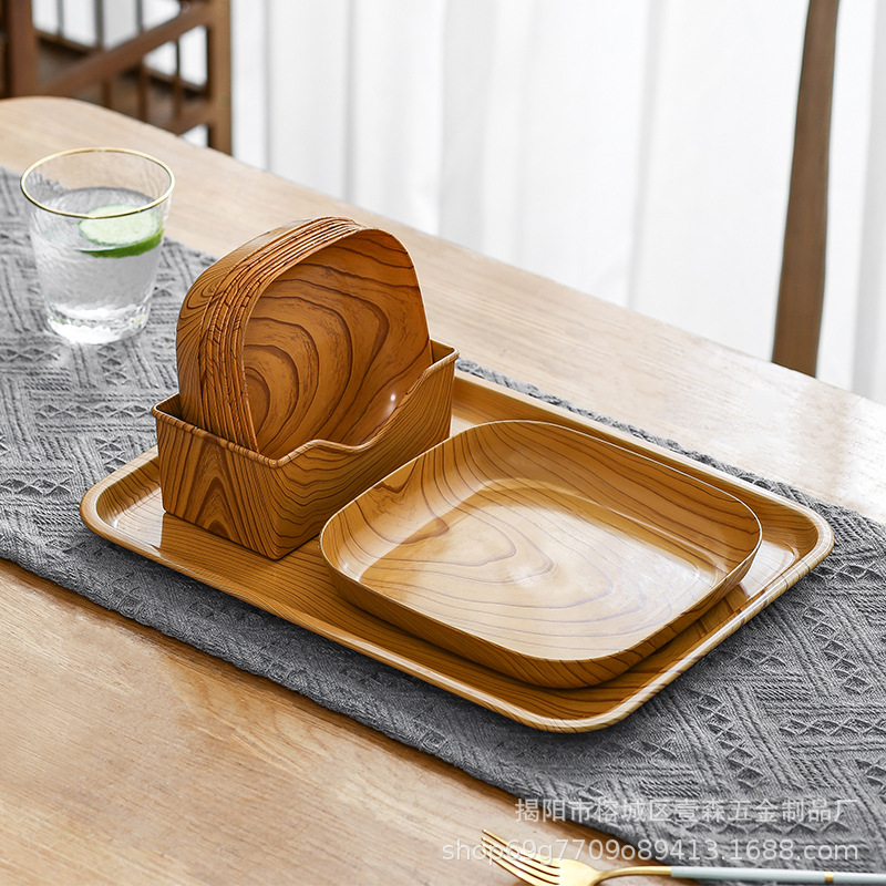 새로운 스타일 라이트 럭셔리 창조적 인 모조 우드 그레인 플라스틱 뼈 뱉는 상자 오후 차 스낵 트레이 우드 그레인 플레이트 고가 과일 플레이트