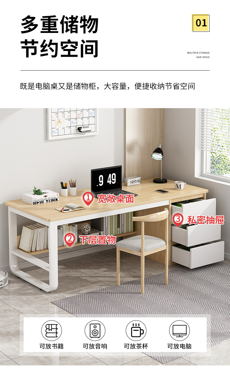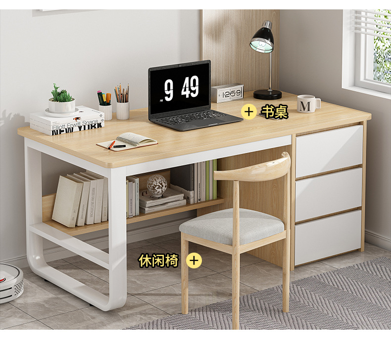 컴퓨터 책상, 학생 책상, 책장 일체형 책상, 가정용 심플 학생 숙제 책상 및 의자, 침실 학습 책상스토어 가기