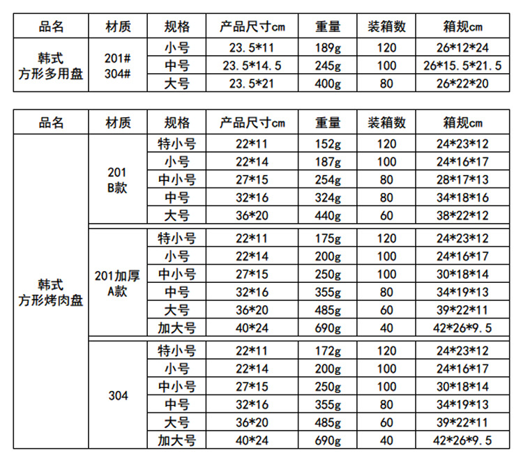 • 304 사각 바베큐 접시 (오리지널 컬러)
