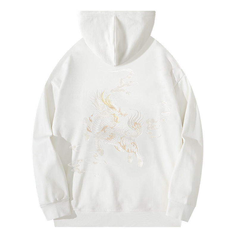 가을 겨울 중국풍 기린 자수 루즈핏 대형 사이즈 면 상의 후드티 남성용 중국풍스토어 가기