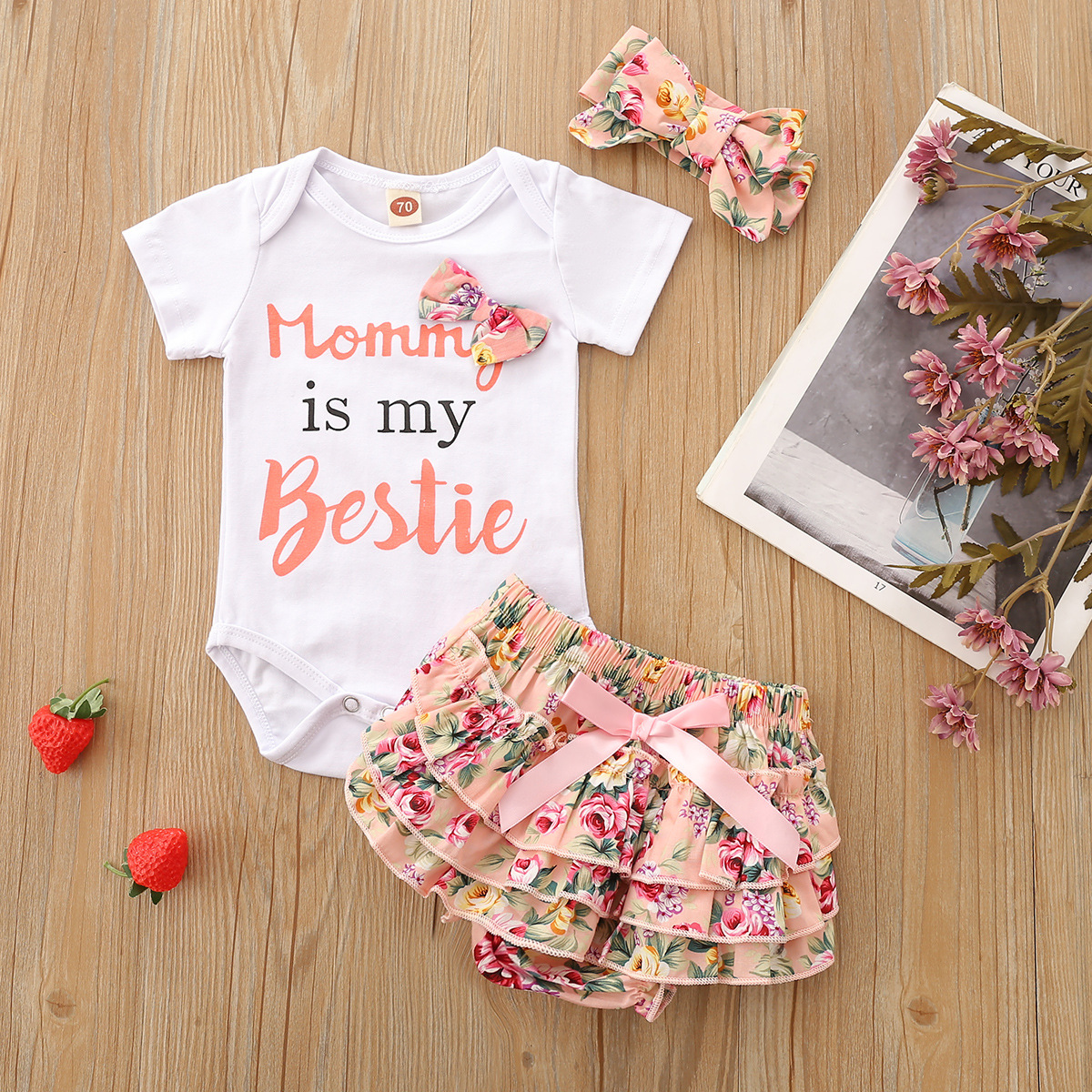 신생아 한 살 아기옷 투피스 반팔 여아옷 레터링 프린트 아기 편안한 면 소재 아기 세트