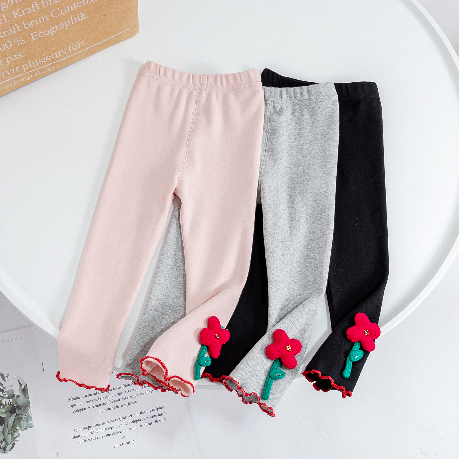 여아 레깅스 봄과 가을 어린이 작은 꽃 바지 2023 새로운 서양 스타일 아기 소녀 가을 겉옷 바지