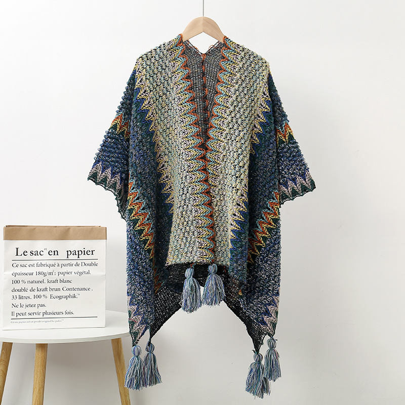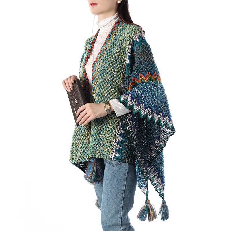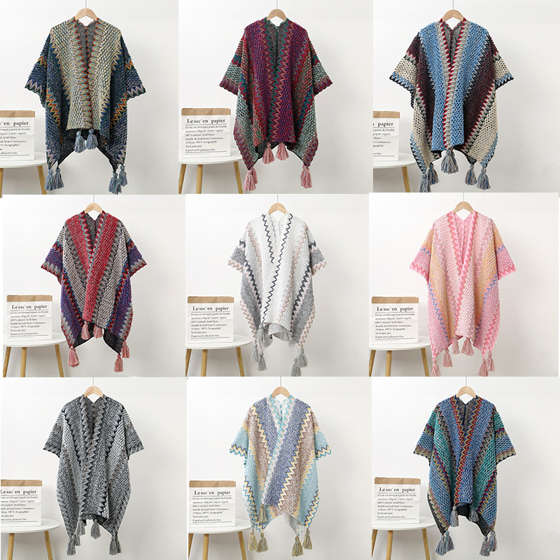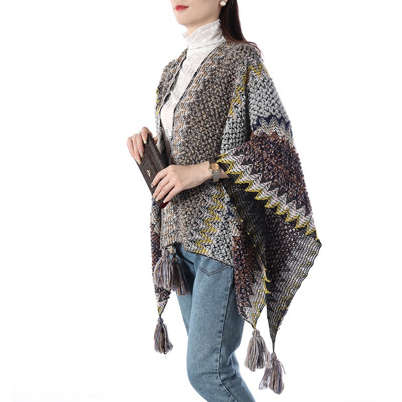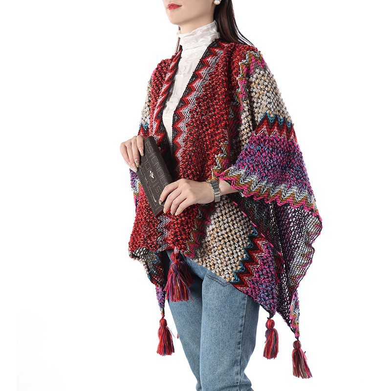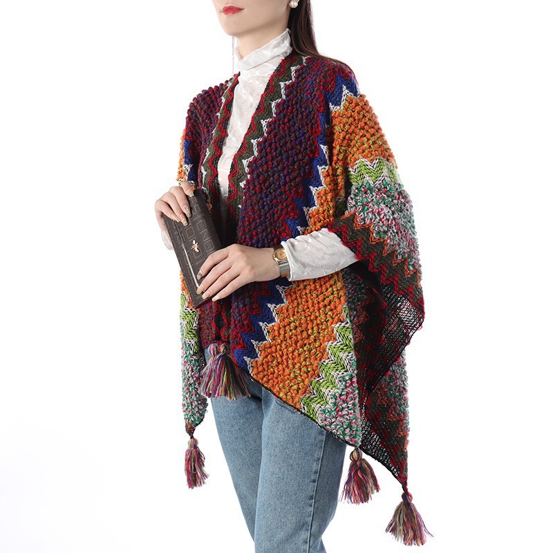 에스닉 스타일 숄 여성 니트 가디건 아우터 따뜻한 망토 도매 레트로 에스닉 스타일