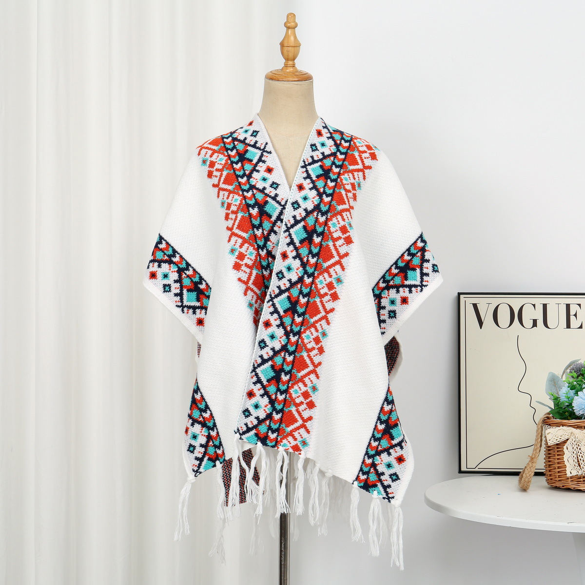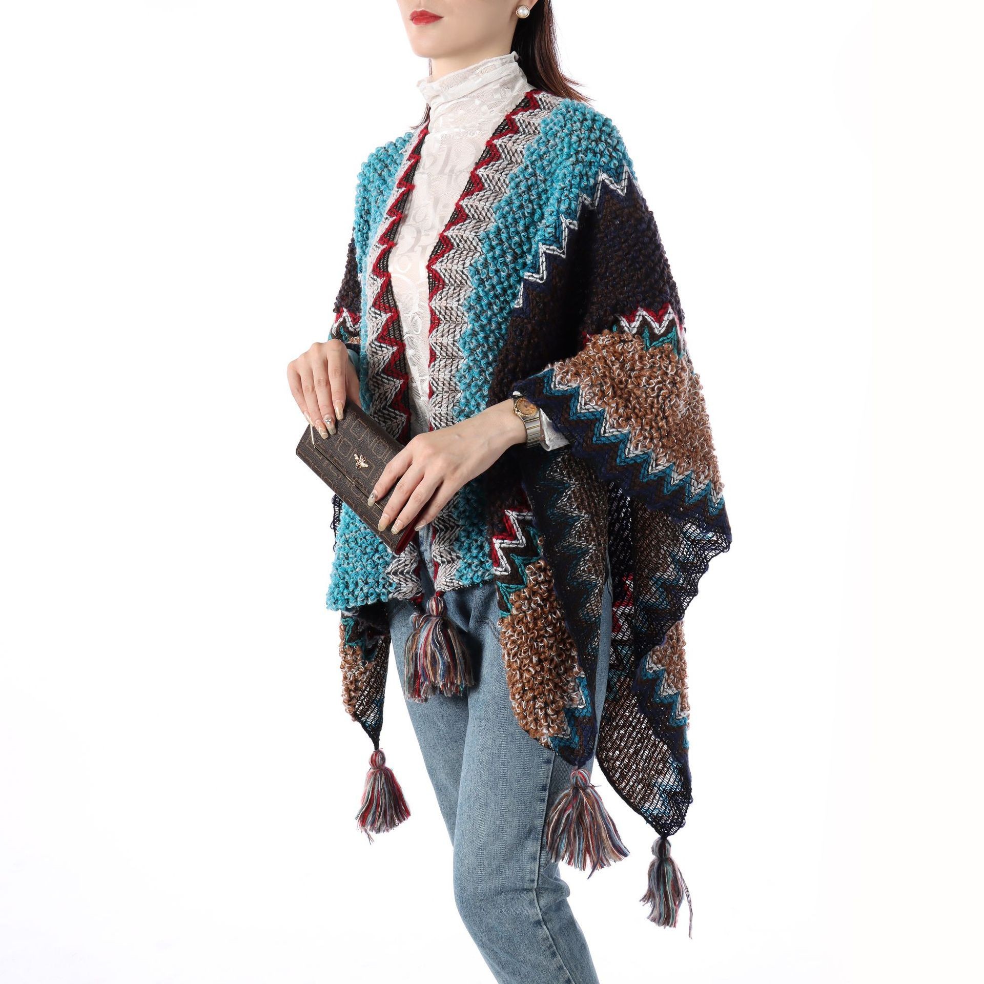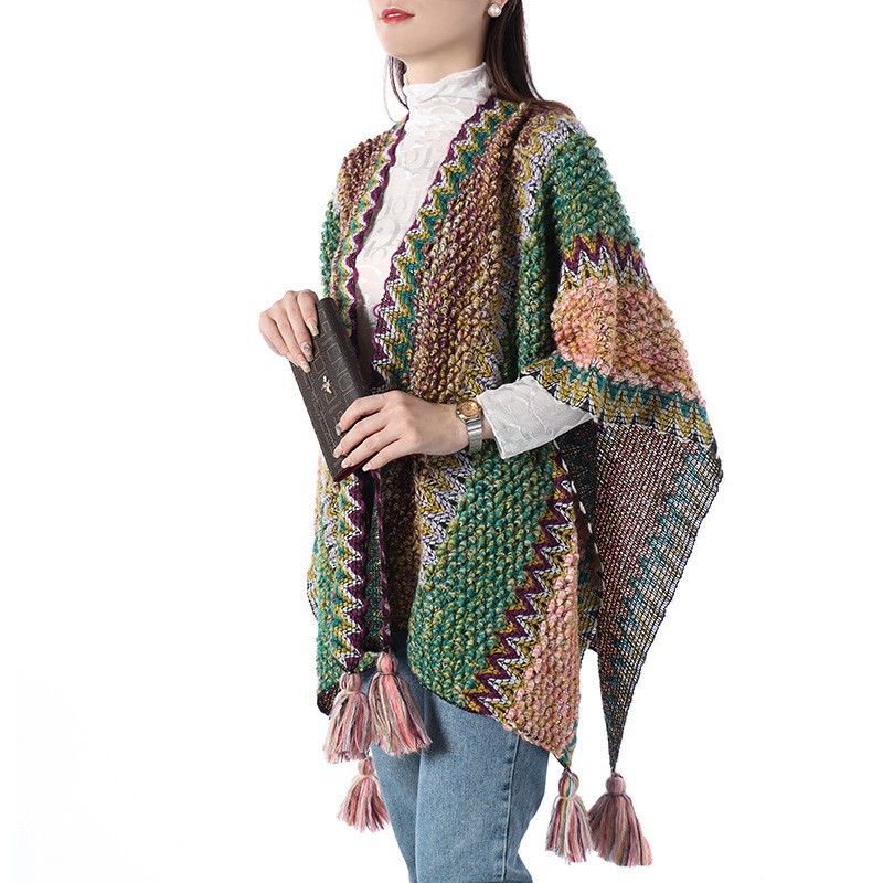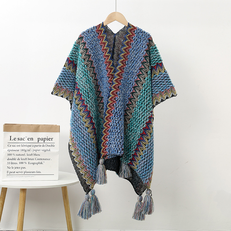에스닉 스타일 숄 여성 니트 가디건 아우터 따뜻한 망토 도매 레트로 에스닉 스타일
