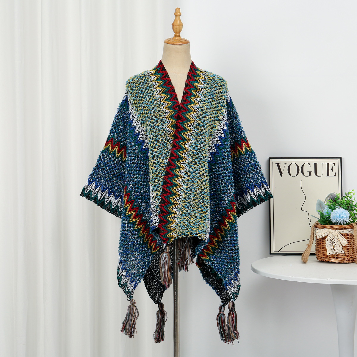 에스닉 스타일 숄 여성 니트 가디건 아우터 따뜻한 망토 도매 레트로 에스닉 스타일스토어 가기