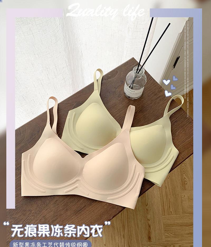 딸기 젤리 소프트 지원 원활한 속옷 여성용 사이드 콜렉터 지원 처짐 방지 스틸 링 여름 얇은 브래지어스토어 가기