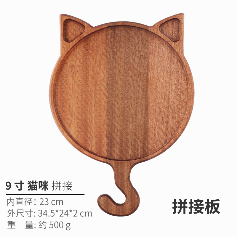 나무 트레이 고양이 피자 접시 빵 스시 가정용 에보니 스테이크 플레이트 일본식 서양판스토어 가기