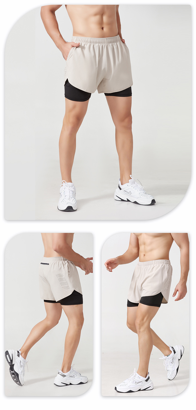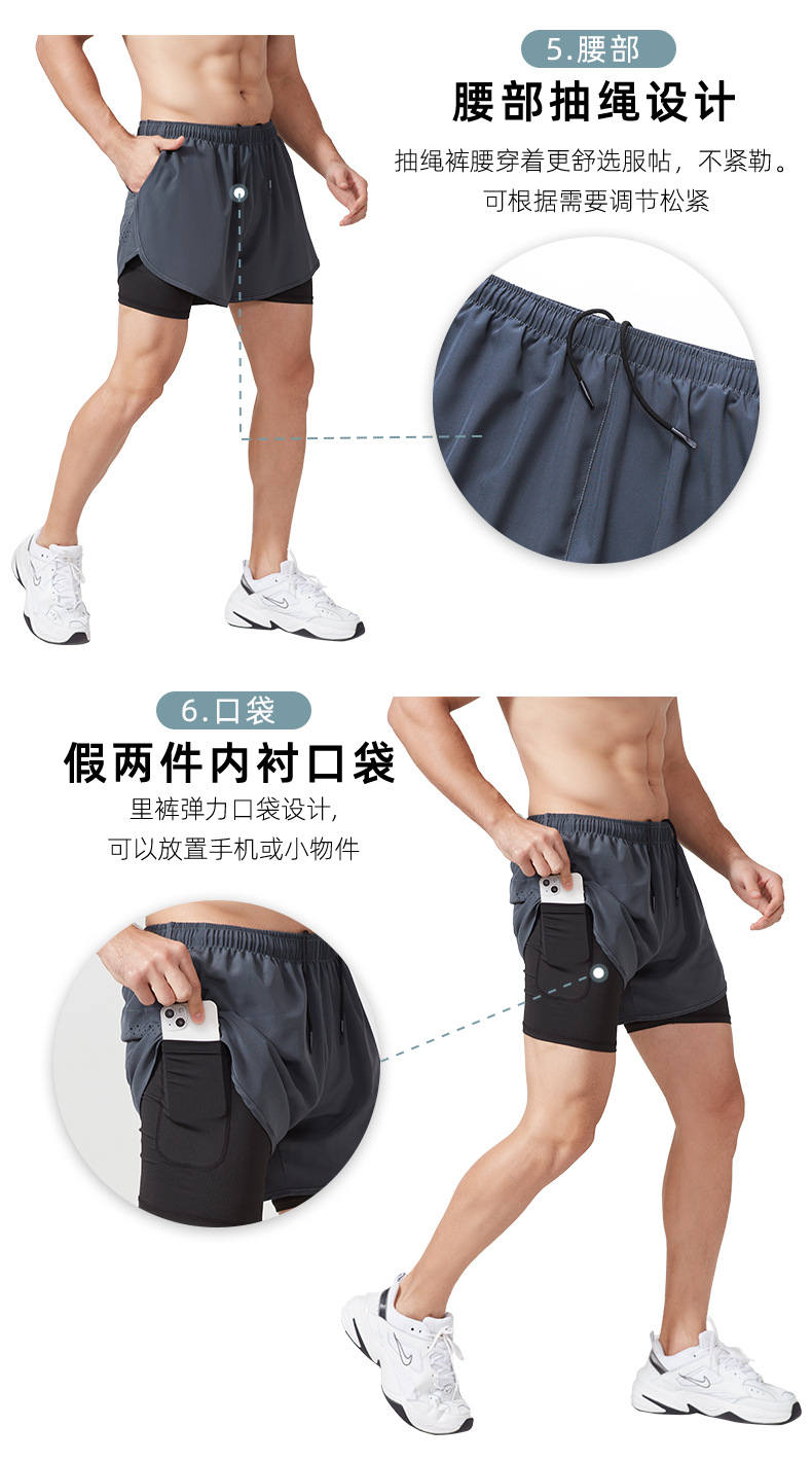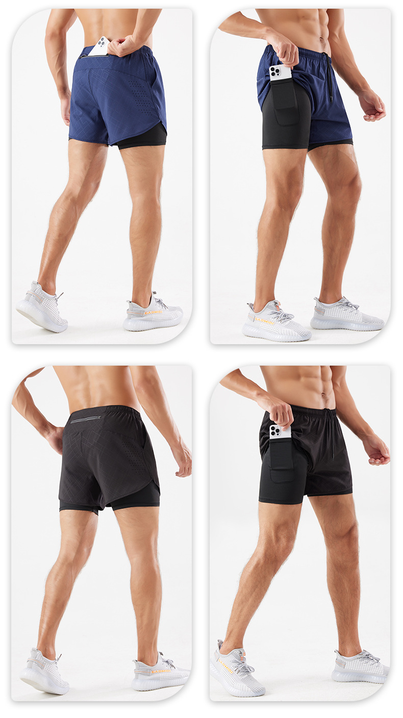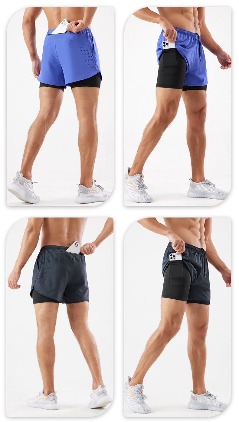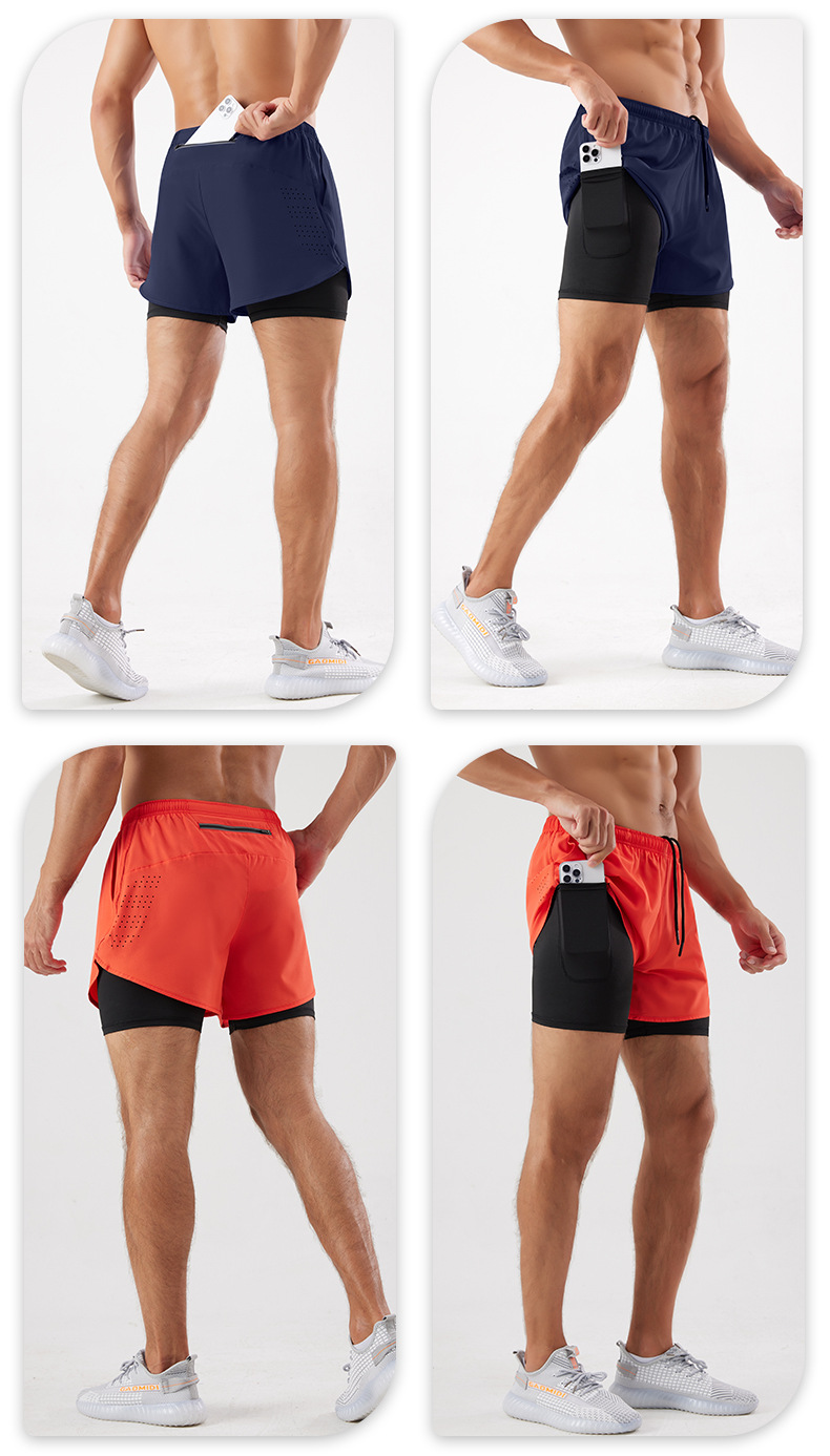 스포츠 반바지 남자 여름 더블 라인 농구 훈련 피트니스 바지 느슨한 통기성 달리기 빠른 건조 반바지