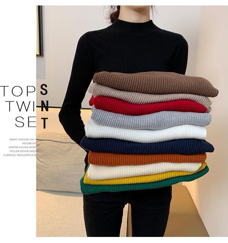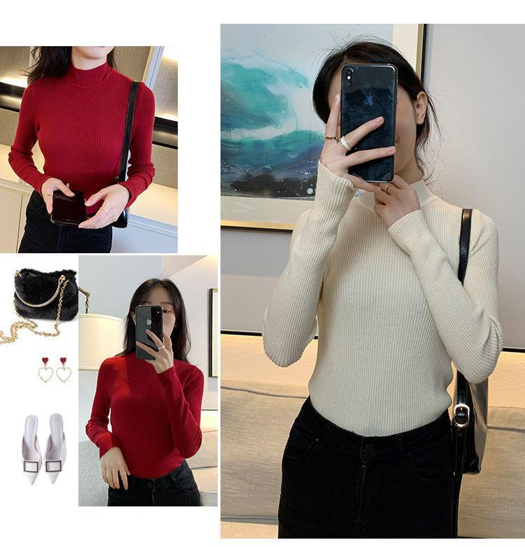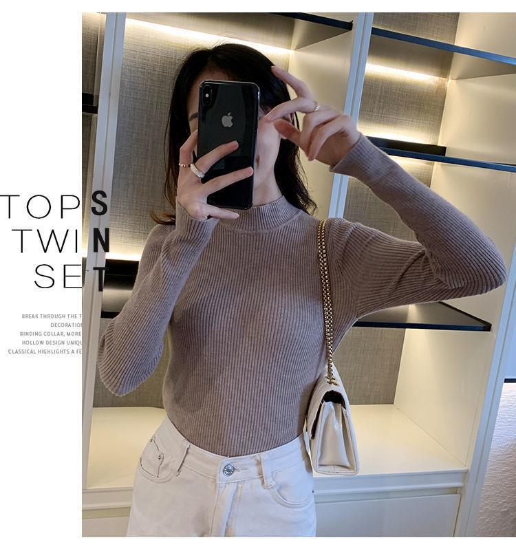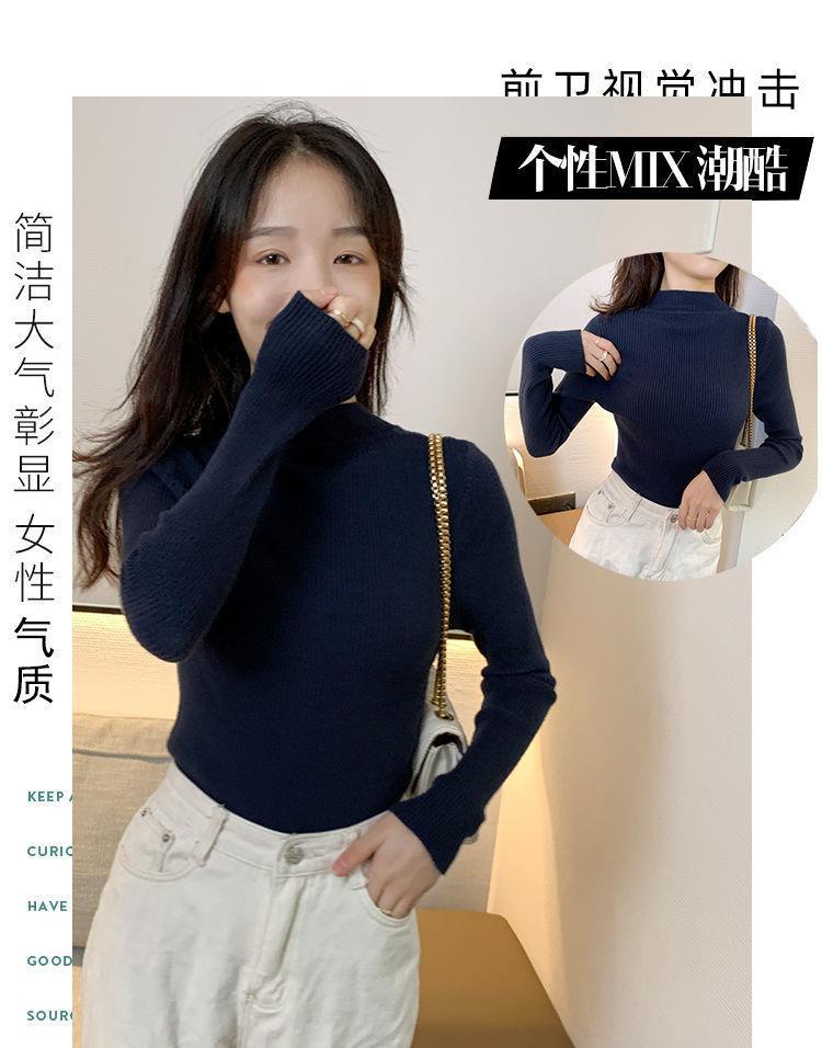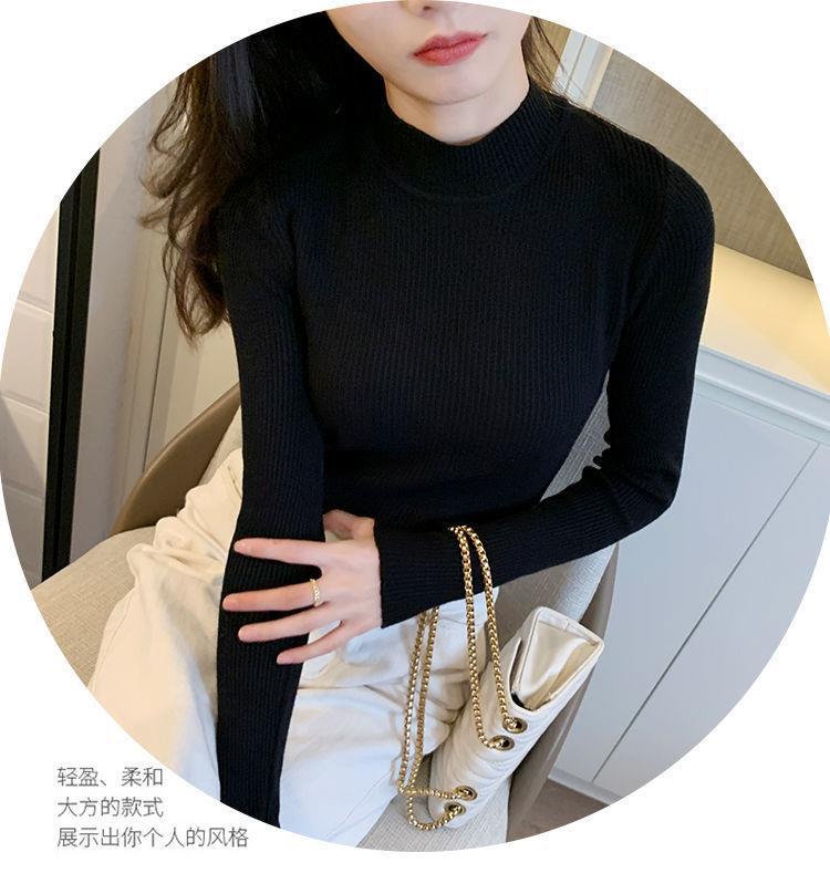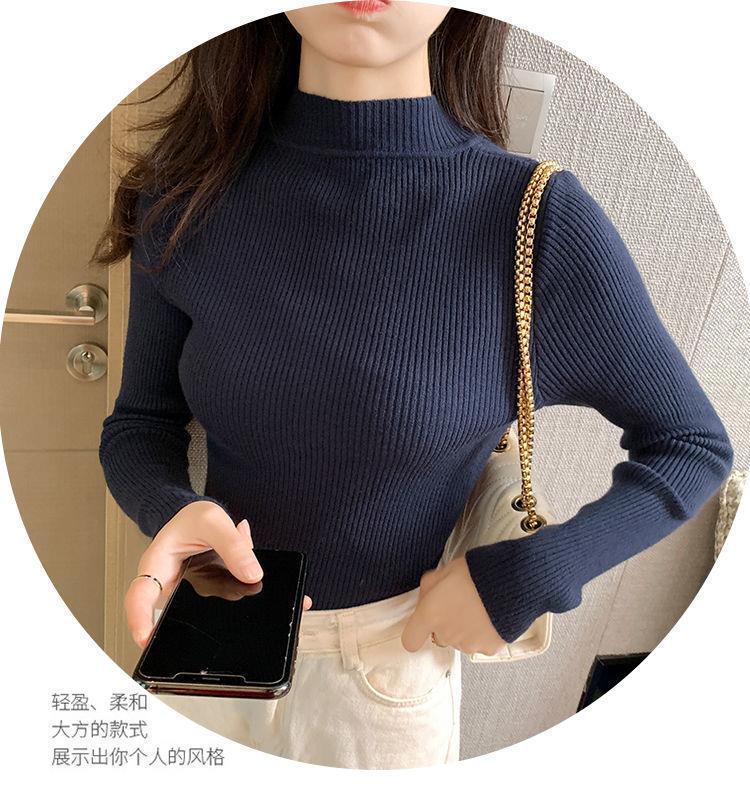 Da Lang 스웨터 공장 직접 가을과 겨울 새로운 세미 하이 칼라 플러스 사이즈 풀오버 스웨터 가을 스웨터 기본 셔츠 여성스토어 가기