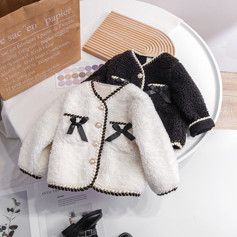 2023 새로운 소녀 샤넬 스타일 코트 가을과 겨울 서양 스타일 아기 소녀의 겨울 옷 기모 두꺼운 탑 모피 하나스토어 가기