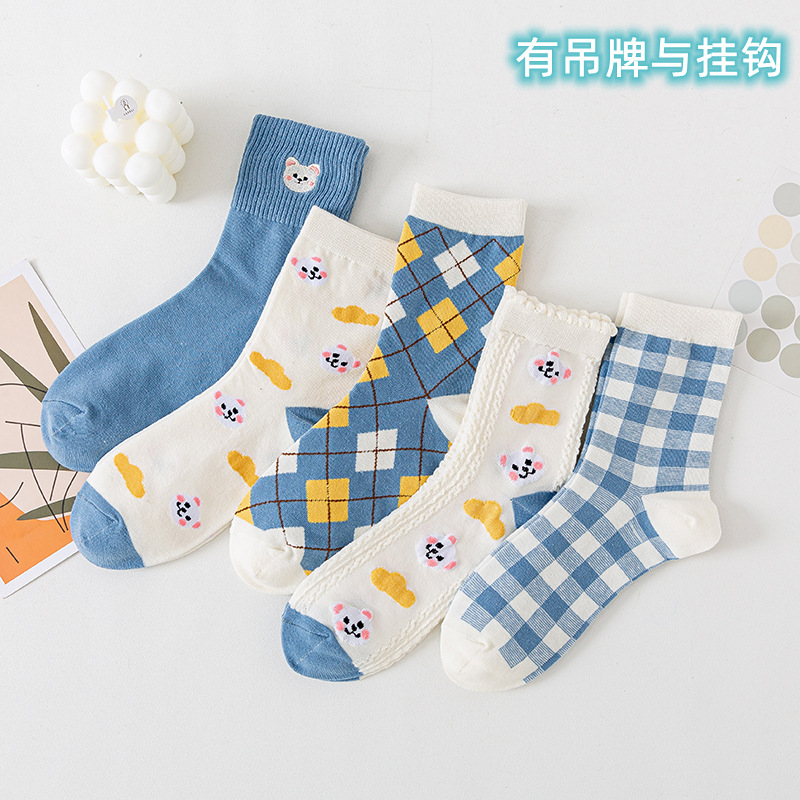 양말 여성 가을과 겨울 대학 스타일 일본식 여성의면 유행 양말 따뜻한 자수 스포츠 양말 도매스토어 가기