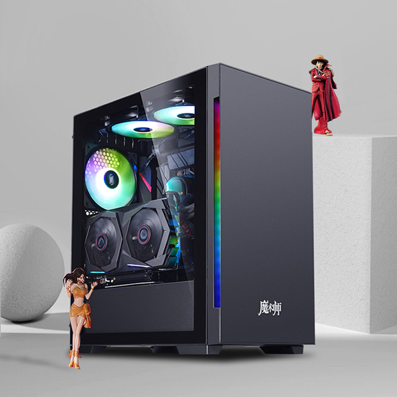 Jinhetian 마술사 슈퍼 컴퓨터 데스크탑 케이스 핑크 측면 투명 음소거 미니 수냉식 어셈블리 메인 케이스스토어 가기
