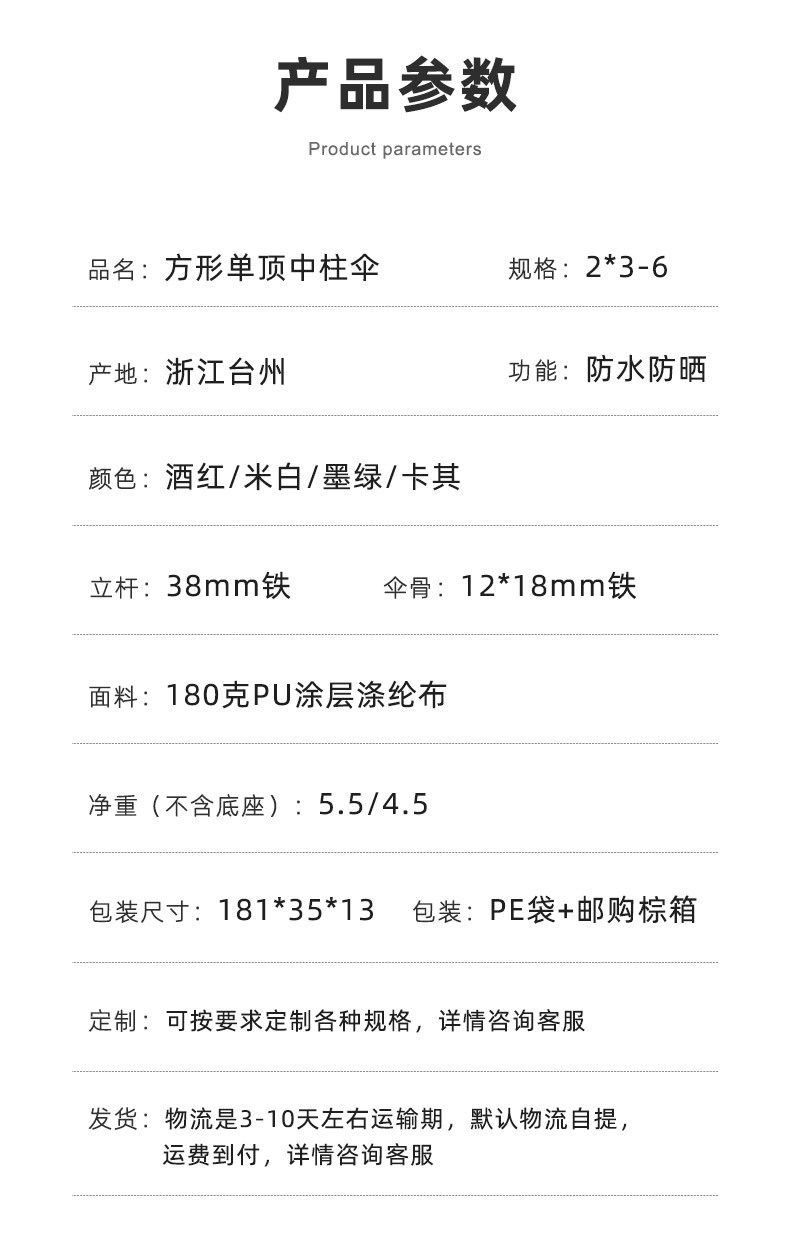 • 2*3-6 평방 중간 기둥 우산 (물 주입 받침대 포함)