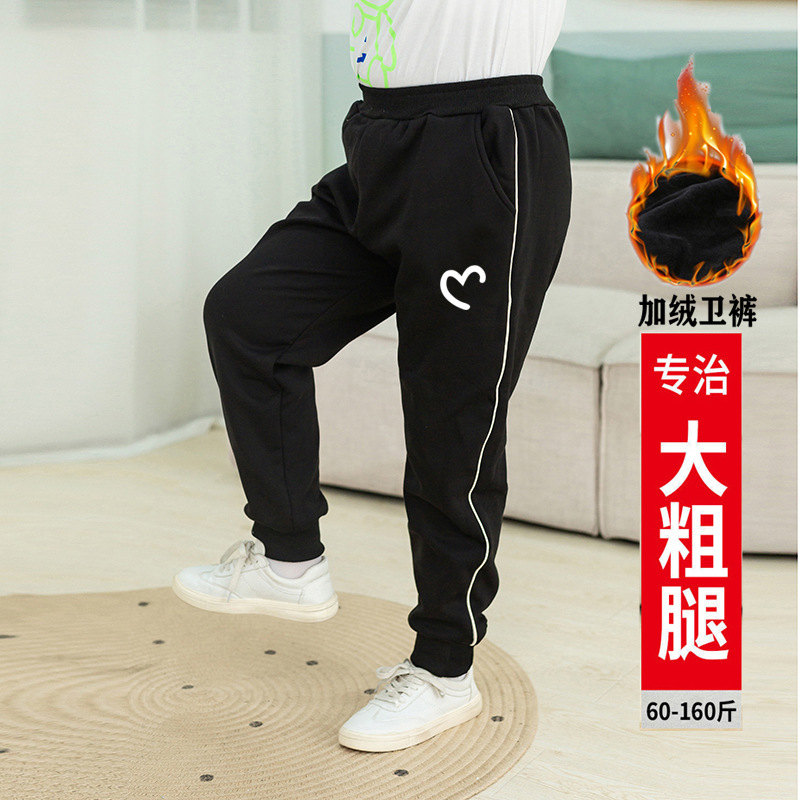 통통한 소녀를위한 플러스 사이즈 느슨한 스포츠 바지 가을과 겨울 높은 허리 슬리밍 스트로우 스트링 바지 기모 스웨트 팬츠스토어 가기
