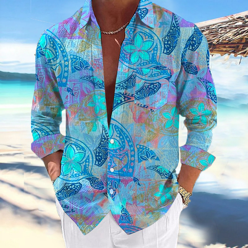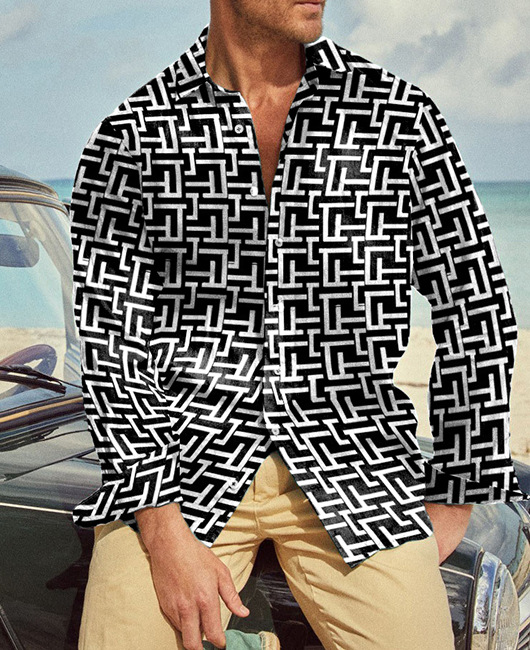 크로스 보더 2022 가을 새로운 아마존 독립 역 뜨거운 판매 유럽과 미국 남성용 긴 소매 셔츠 캐주얼 프린트 탑