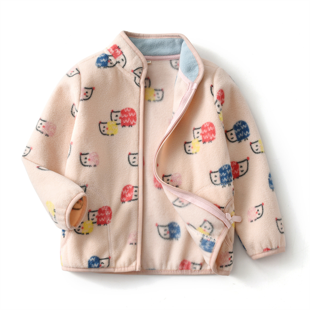 가을 2023 새로운 어린이 스탠드 칼라 폴라 양털 새 인쇄 코트 아기 소녀 양털 재킷 wy1599스토어 가기