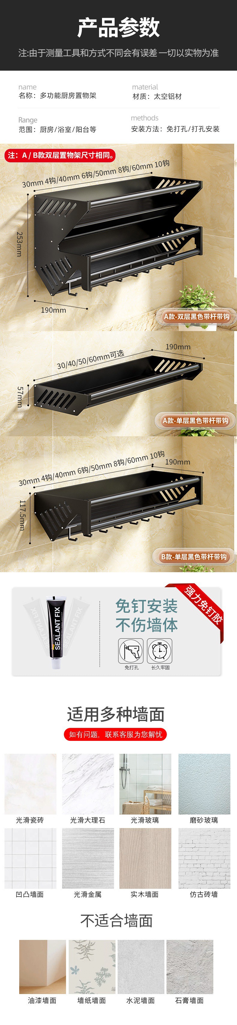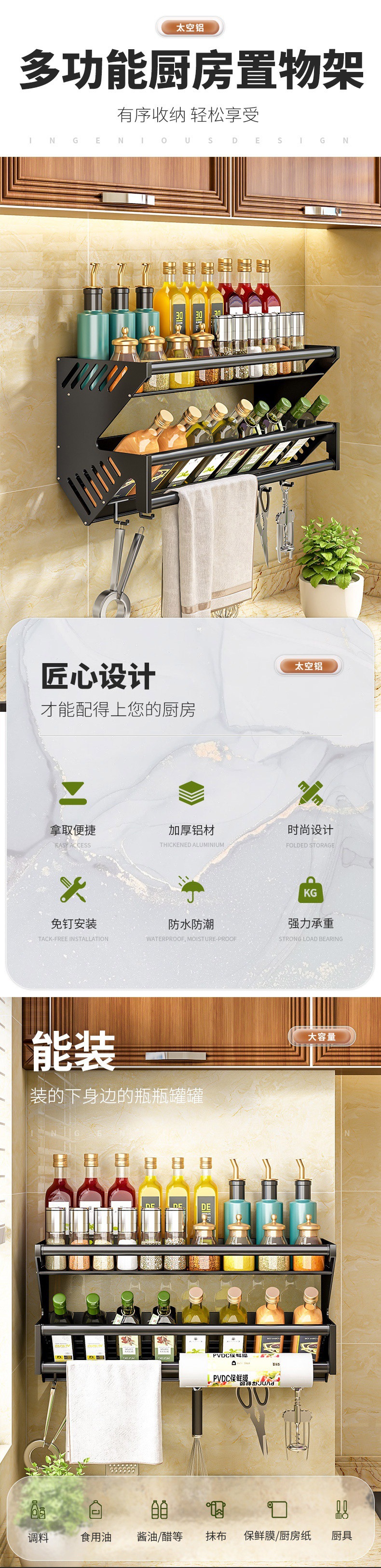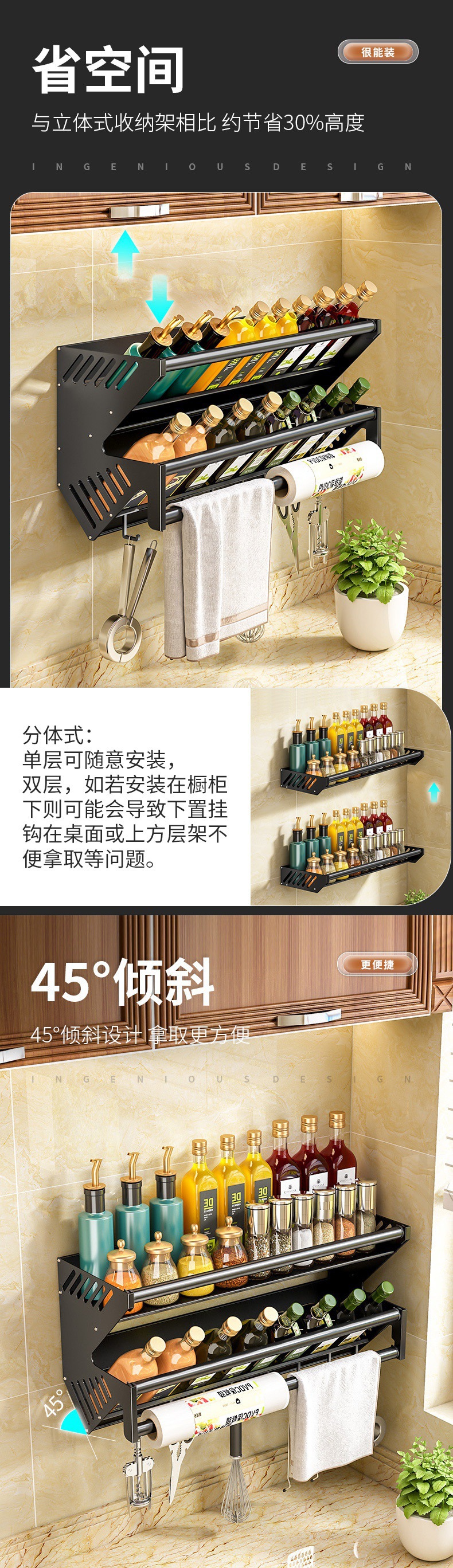주방 걸이 수납 랙 펀치 프리 조미료 용품 보관 벽걸이 가정용 다기능 여름 아름다운