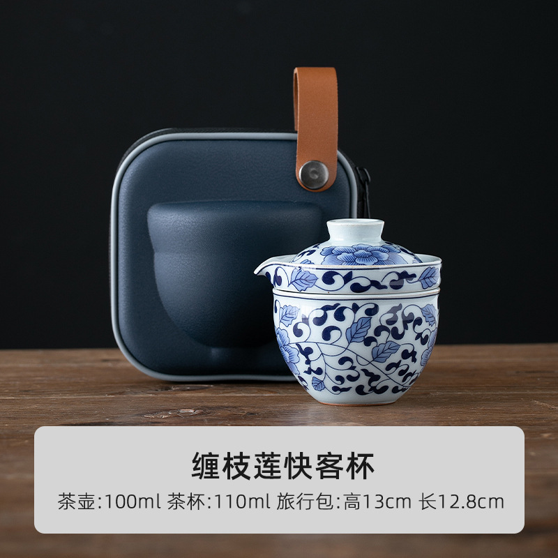 휴대용 여행 티 세트 비품 소세트 아웃도어 가방 블루와 화이트 도자기 1 인 스페셜 티 컵 빠른손님 컵 냄비 a 컵스토어 가기