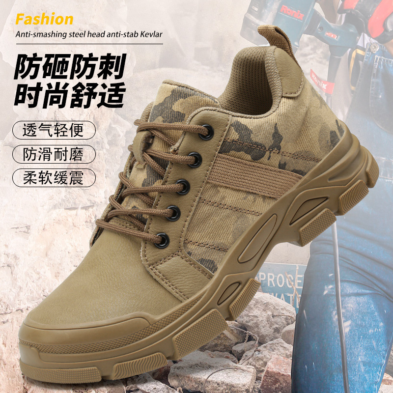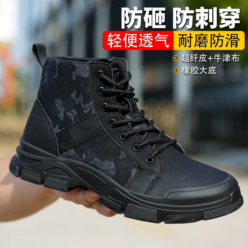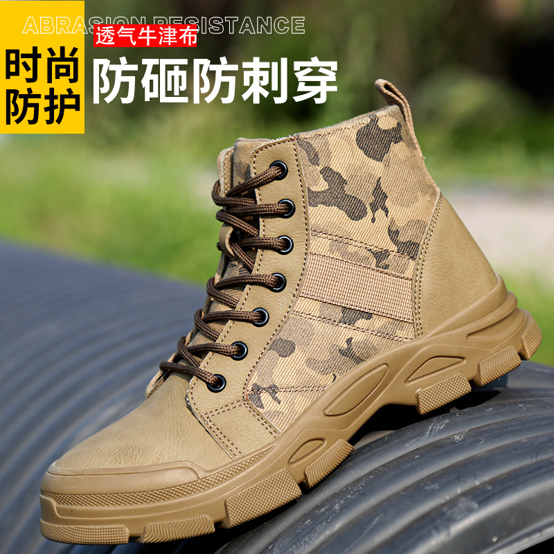크로스 보더 위장 부츠 노동 보호 신발 안티 스매싱 안티-찌르기 내마모성 옥스포드 천 통기성 편안한 안전 작업 신발 재고 도매