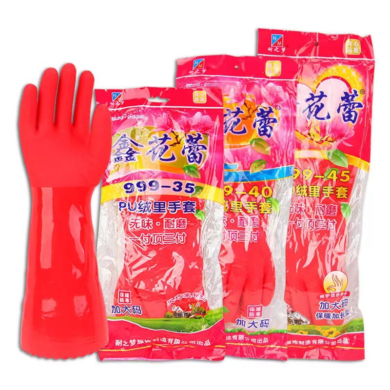 신 꽃 봉오리 999-40 기모 식기 세척 장갑 고무 장갑 세탁 가정 두꺼운 방수 따뜻한 가정용 장갑스토어 가기